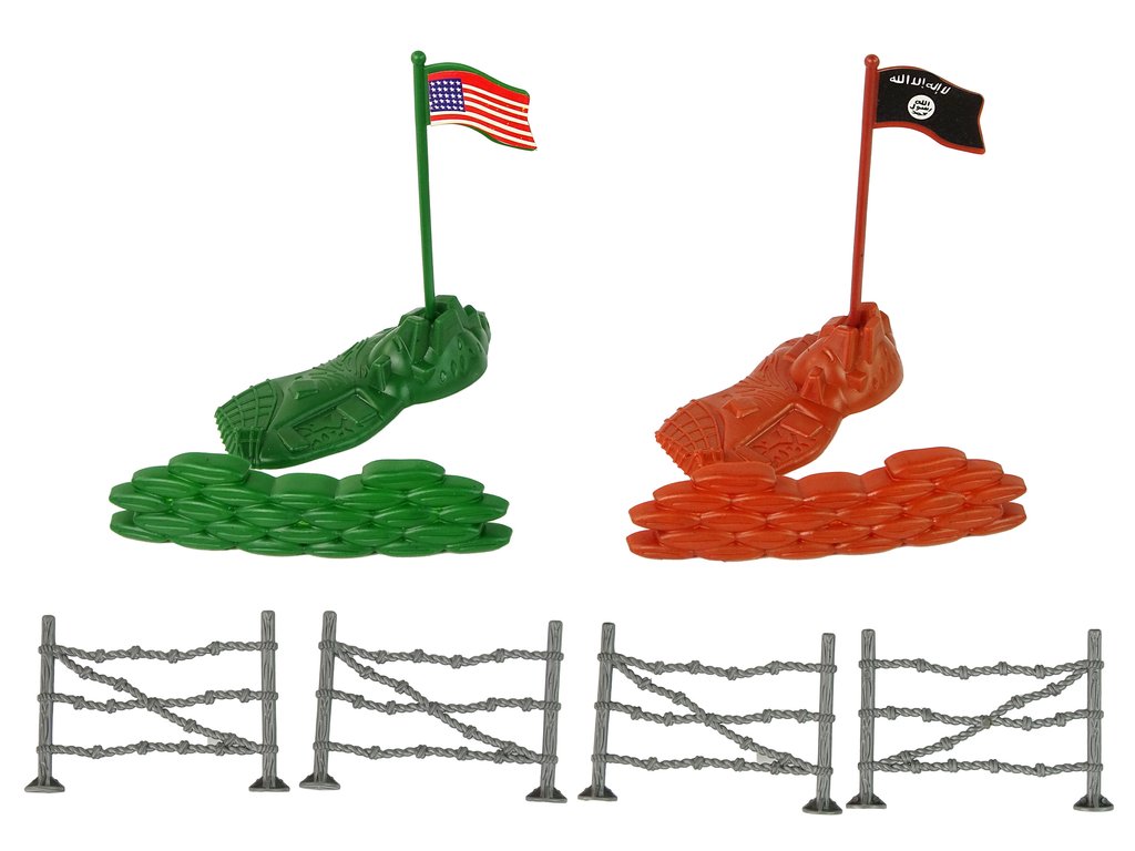 Set rovněž obsahuje doplňky jako pyramidy, zídky, ploty, vlajky a mapu, které dělají hru ještě zajímavější. Vaše ratolesti budou moci vytvářet úžasné scénáře a cítit se jako na bitevním poli, když se schovávají za zdmi.