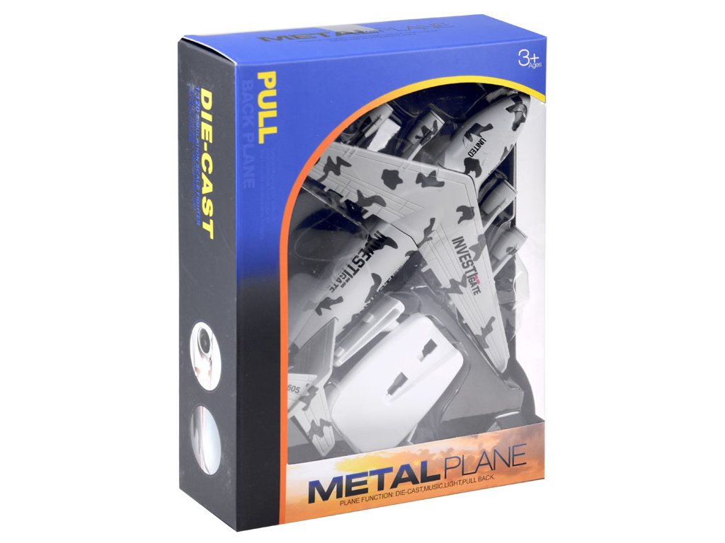A repülőgépet gondosan, a részletekre odafigyelve készítették. A törzs fémből és műanyagból készült. A légi jármű utastere jellegzetes szürke álcázó színnel büszkélkedhet. A szállítóeszköz visszahúzó mechanizmussal rendelkezik – a játék visszahúzása után a repülőgép előre mozdul. A repülőgép padlóhoz nyomása aktiválja a motorok hangját és a pilótafülke világítását.