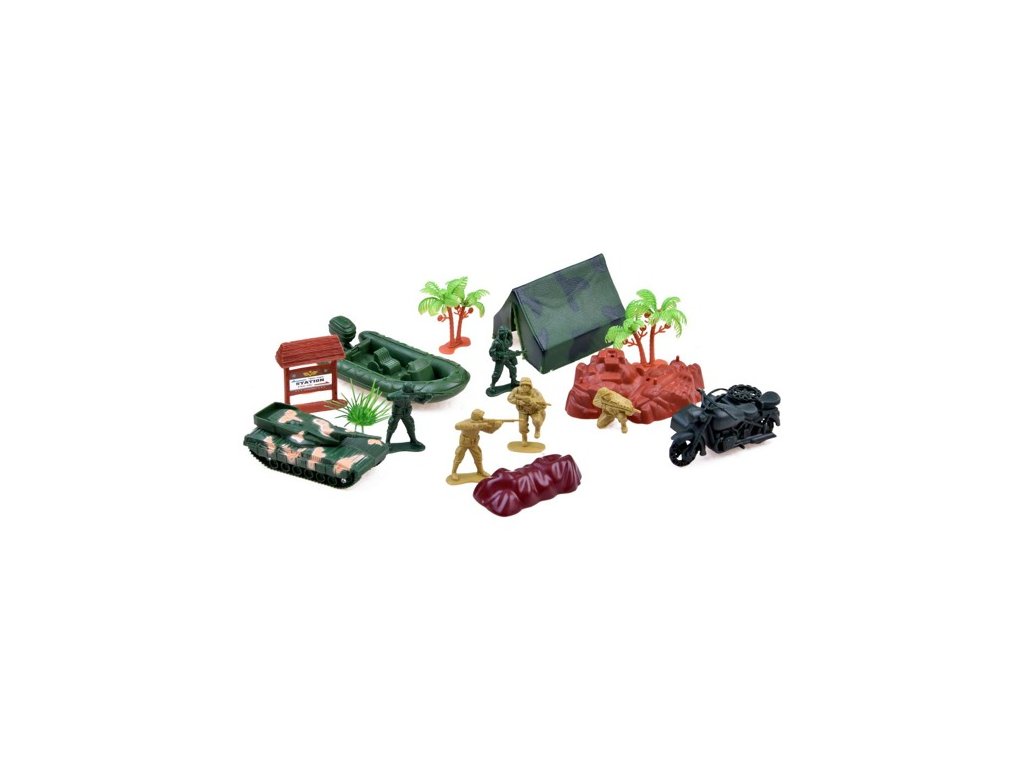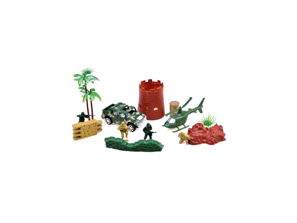A katonai készlet nagyszerű ajándék minden fiúnak, aki szeretne katonai játékokkal játszani. A készlet katonákat tartalmaz, amelyekből két hadsereget lehet összeállítani és különféle katonai csatákat lehet játszani. A készlet tartalmaz még tankokat, helikoptereket, tornyokat, sátrakat és még sok mást.
