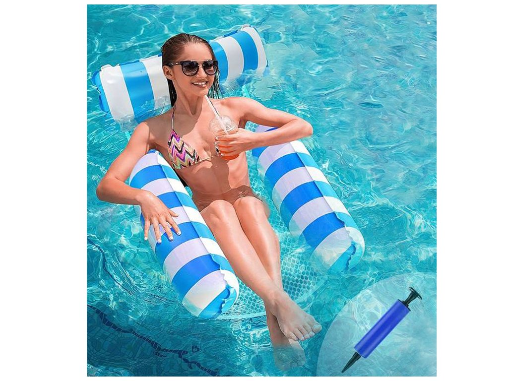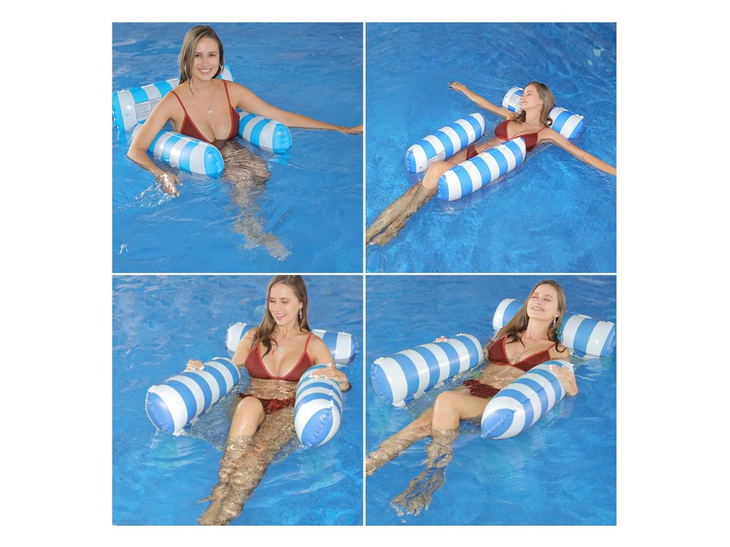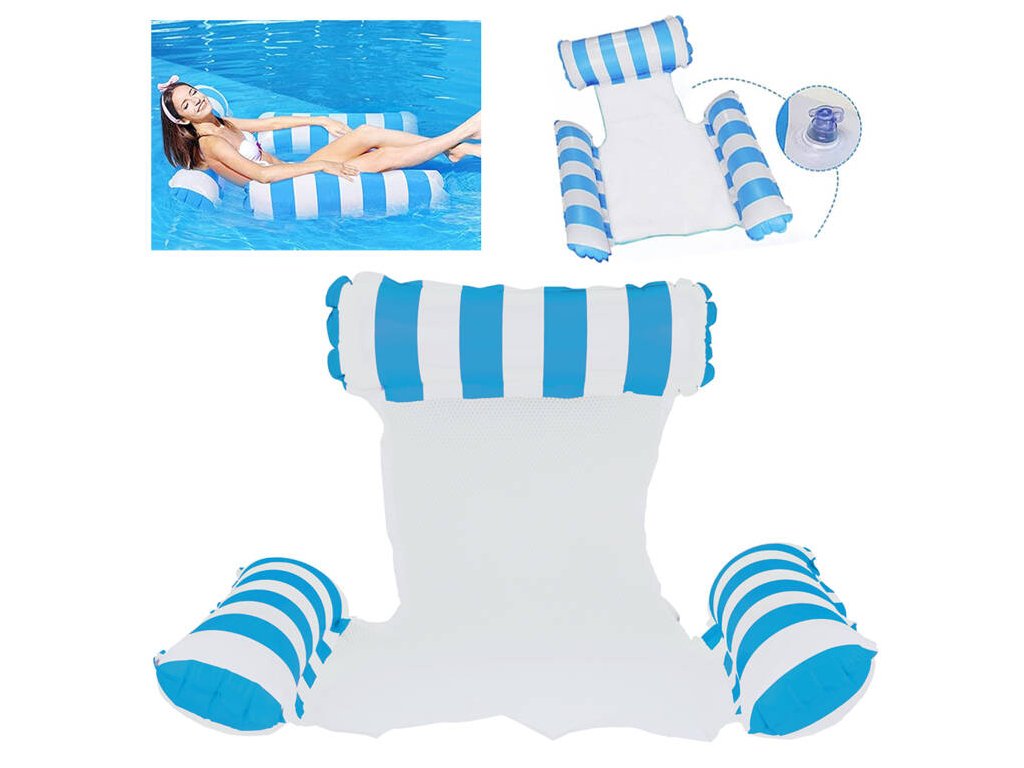 Duhový nafukovací hamak na vodu - křeslo na plavání v modré a bílé barvě