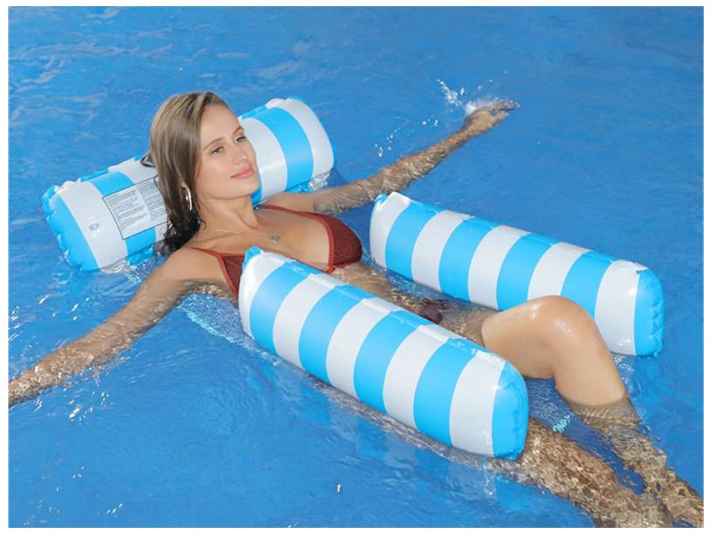 Hamak má nafukované prvky z odolného PVC po obou stranách, propojené nylonovou síťovinou, na které si můžete pohodlně lehnout. Ale to není vše! Díky částečnému ponoření do vody zůstáváte při opalování stále chladní, což dělá tento kousek ideální volbou na horké dny.