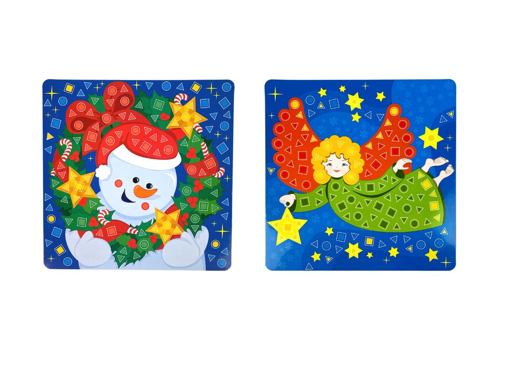 Készlet barkácsolás színes mozaik karácsonyi rajzok hóember angyalok