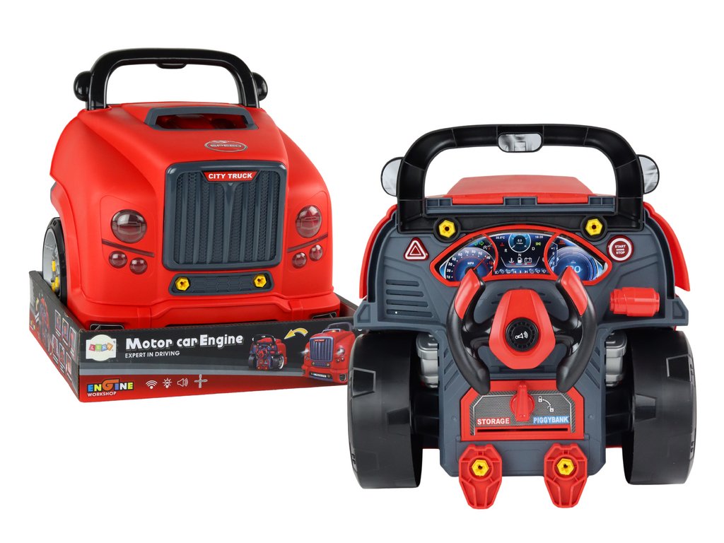 A gyerekeknek szánt piros barkácskamion nem csak játék, hanem eszköz is a kisgyermekek mechanikai készségek és kreativitás fejlesztéséhez. A teherautó számos mechanikai funkcióval rendelkezik, amelyek lehetővé teszik a gyermek számára a jármű új alkatrészeinek lecsavarását és összeszerelését, serkenti a képzeletet és fejleszti a kézügyességet.