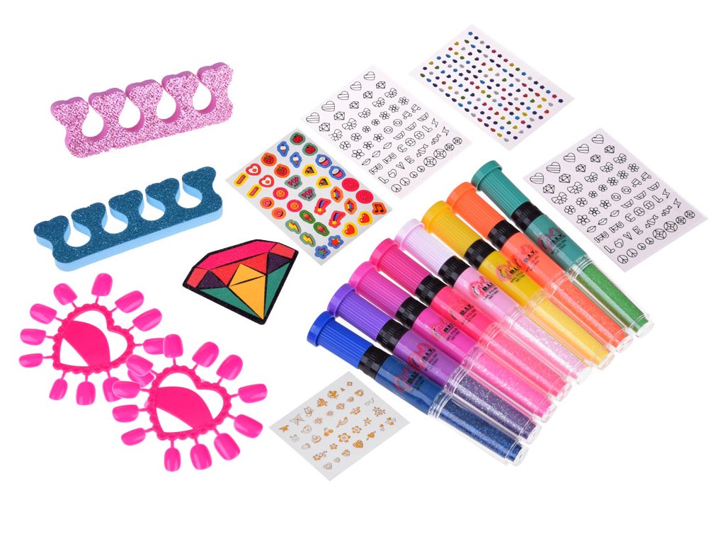 Sada na zdobení nehtů jistě najde uplatnění v každém domácím salonu malé manikérky. Stačí jen trochu představivosti, manuální zručnosti a krásné nehty jsou hotovy. Sada je bohatě vybavena jedním fixem, které skrývá mnoho možností jako je lak na malování nehtů, třpyt na zdobení a také špička k zdobení, kreslení různých ozdob, což umožňuje vytvářet úžasné stylizace. S takovou sadou si malá manikérka může pozvat své kamarádky, maminku, tetu, sestru nebo babičku na prodloužení a ozdobení nehtů. Fantazie a různé zdobení, barevné laky umožní vytvoření krásných kompozic, rozvíjejíce také manuální dovednosti našeho dítěte. Holčičky rády sledují starší, a tato sada umožní první kroky ve světě nehtového designu.