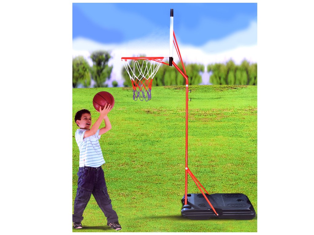 Praktický stojan s tabulí na basketbal, včetně basketbalového míče a pumpičky, zaručuje skvělou zábavu na čerstvém vzduchu. Je ideální na školních hřištích i ve vaší zahradě nebo na dětském hřišti. Díky stabilní základně na kolečkách a sloupu upevněnému v základně si všichni milovníci basketbalu užijí hru naplno. Díky integrovaným kolečkům lze snadno přesunout celý set.