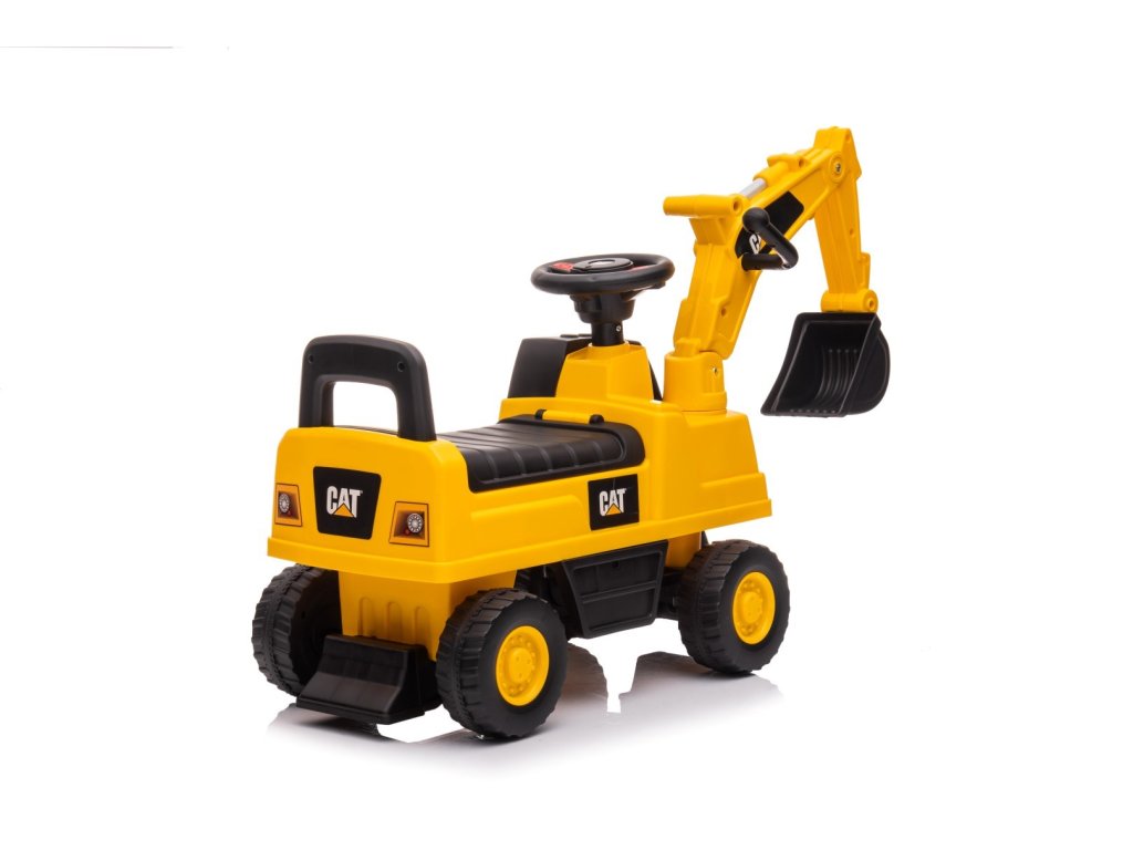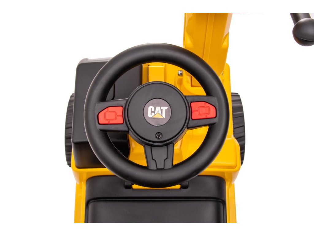 Žluté odrážedlo bagr CAT s pohyblivým ramenem a velkou lopatou je skvělou hračkou pro malé stavitele. Má volant se zvuky, velký úložný prostor pod sedadlem, vysokou opěrku a ochranu proti převrácení, což zajišťuje bezpečnou zábavu. Velká terénní kola umožňují snadnou jízdu i na nerovném povrchu a jeho nosnost je 25 kg. Toto odrážedlo s licencí CAT splňuje bezpečnostní normy a je ideální pro děti od 1 roku.