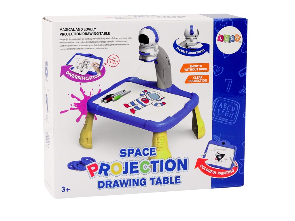 Az űr témájú vetítőkészlet gyerekeknek rajzoláshoz egy kreatív játék, amely kreatív játékra és az univerzum titkainak felfedezésére ösztönzi a gyerekeket. A készlet egy színes asztalból és egy űrhajós alakú projektorból áll.