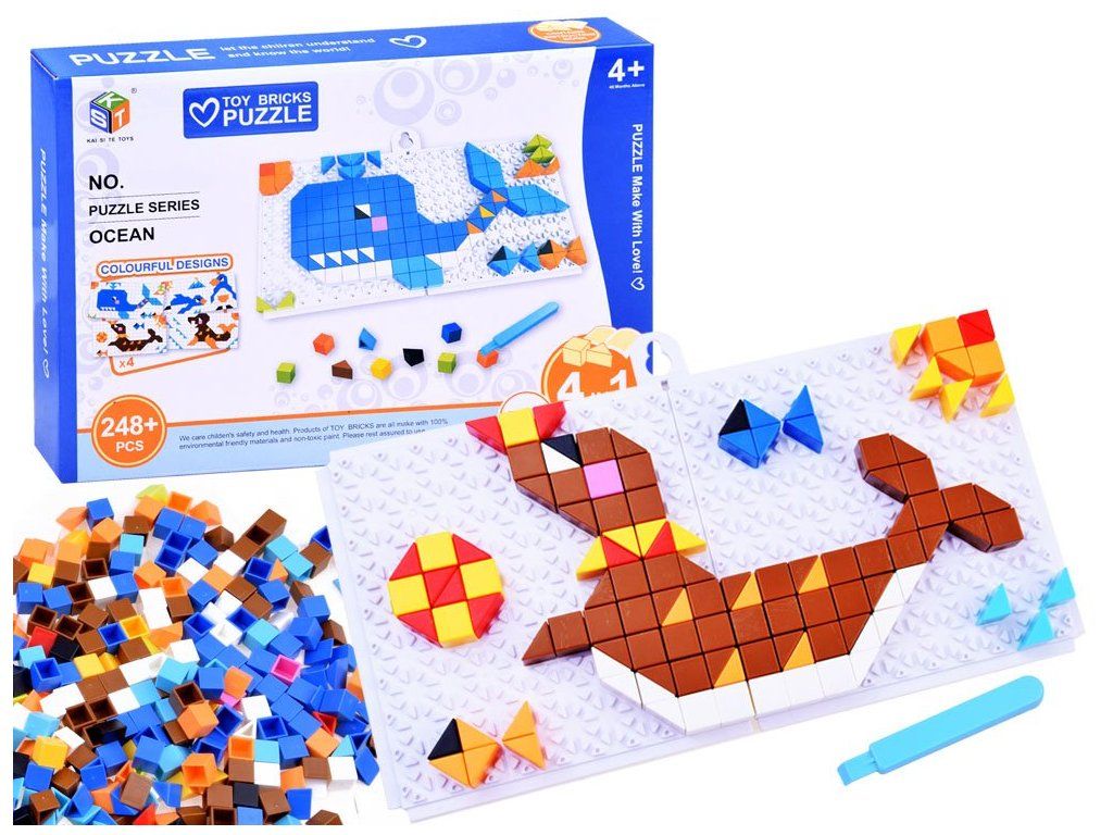 Gyermek kreatív készlet saját színes képek elkészítéséhez. A készlet műanyag blokkokból áll, amelyeket a táblára helyeznek. A játék segíti a gyerekek képzeletének, koncentrációjának és kézi készségeinek fejlesztését.