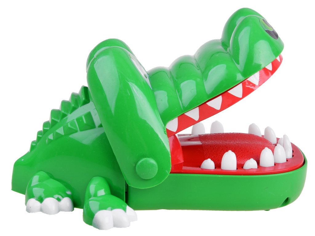 Super hra, která vyžaduje důvtip a rychlé reflexy pro celou rodinu nebo skupinu přátel. Zábava spočívá v kontrolování každého zoubku krokodýla postupně, až se jeho tlamka zavře. Krokodýl nekouše silně a nemá žádné ostré hrany. Důležitý je ten vzrušující pocit – nikdy nevíte, po stisknutí kterého zoubku se tlamka zavře. Hra přináší spoustu vzrušení, učí trpělivosti, reflexu a ohleduplnosti.