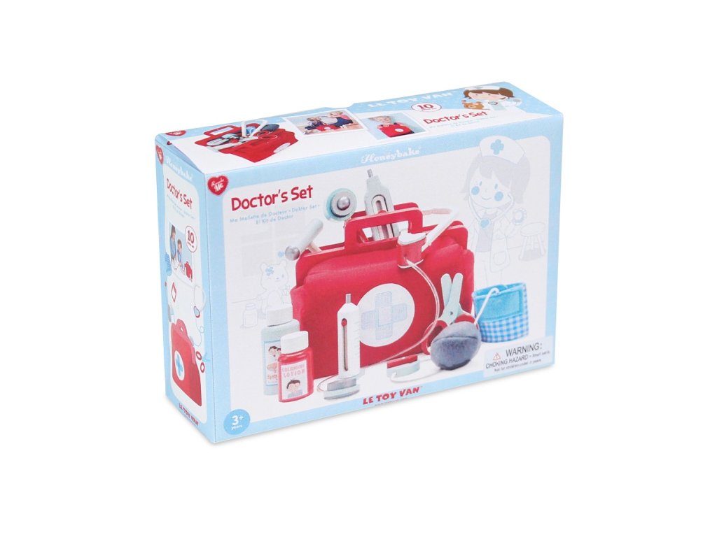 Le Toy Van orvos szövettáska vintage stílusú fából készült orvosi műszerekkel és palackokkal. A készlet sztetoszkópot, hőmérőt, fecskendőt, vérnyomásmérőt, fülmérőt, orvosi kalapácsot, ollót és két gyógyszeres üveget tartalmaz. Mind gyerek méretben. A brit Le Toy Van márka hagyományos, kiváló minőségű, prémium fajátékokat gyárt modern dizájnnal. A játékok minőségét a természetes anyagok gondos kiválasztása és a kivételesen részletes feldolgozás biztosítja. A Le Toy Van játékok kézzel festettek. A gyermekek képzeletétől ihletett Le Toy Van büszke arra, hogy olyan innovatív játékokat tervez, amelyek támogatják a gyermekek teljes fejlődését. A Le Toy Van-t 1995-ben alapították az angliai Surrey-ben családi vállalkozásként. Az alapítók Georges Le Van és fia, Steven Le Van voltak, akik egy családi cég utódai, akik több mint 150 éves múlttal és tapasztalattal rendelkeznek a fajátékok kézi készítésében. Az elmúlt 25 év során a Le Toy Van a fajátékok megbízható gyártójává vált. A díjnyertes játékokat mára a világ több mint 50 országában értékesítik. Minden játék megfelel a legszigorúbb ICTI, ISO 9001, EN-71 és ASTM biztonsági szabványoknak.Kiegészítő paraméterek