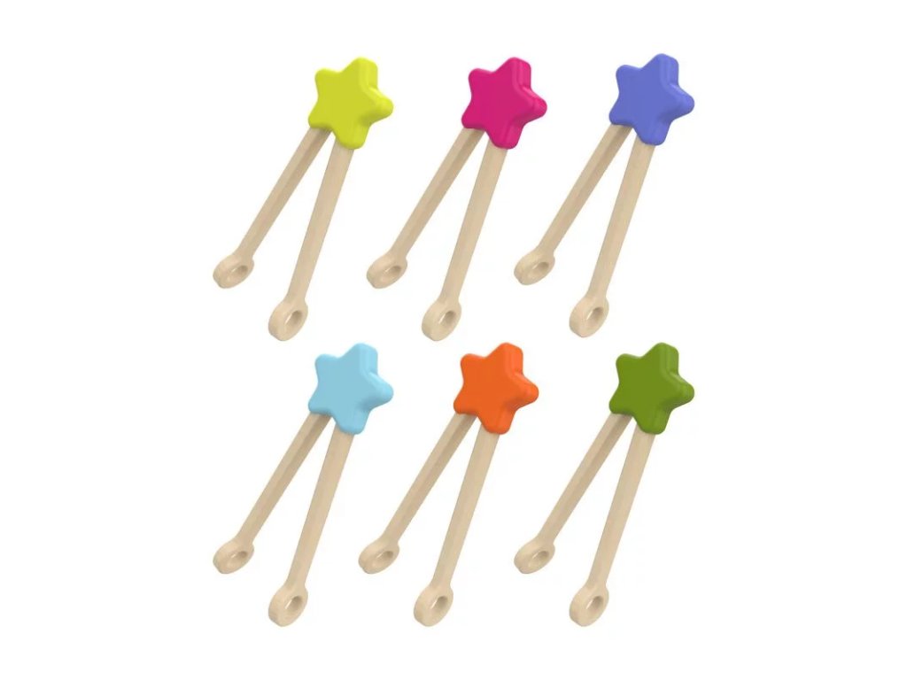 A fából készült csipeszek alkalmasak gyakorlati tevékenységekre és válogatásra, mind otthon, mind gyermekcsoportban. A készlet 6 különböző színű csipeszt tartalmaz. A csipeszek használatával a gyerekek gyakorolják a finom izmokat az ujjaikban, a csuklójukban és a kezükben, amelyek később olyan tevékenységekben segítik őket, mint az írás, az olló használata, a cipőfűző bekötése vagy az öltözködés.