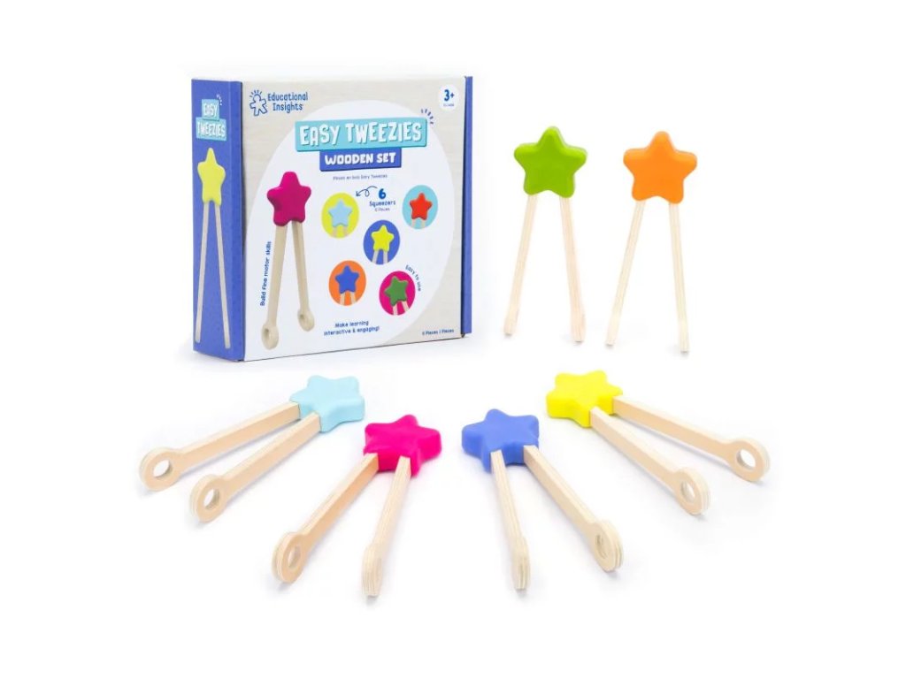 Fából készült csipeszek készlete a brit Learning Resources oktatási márkától, amely a finommotorika fejlesztésére és a gyermekek kezében lévő apró izmok erősítésére szolgál.