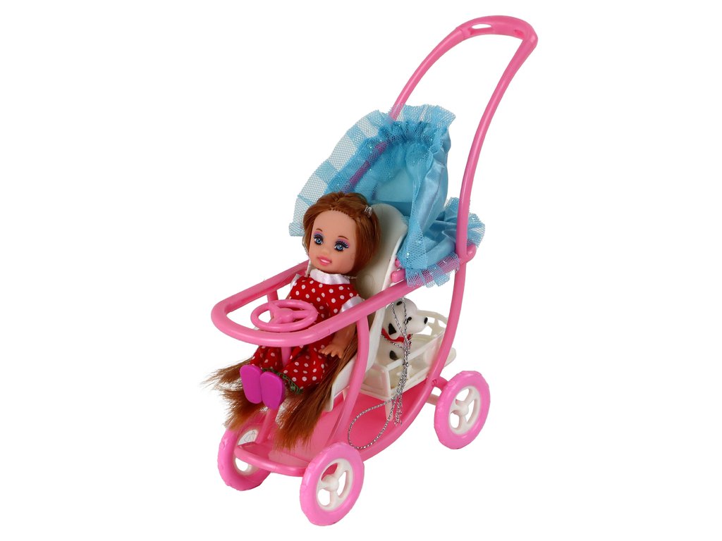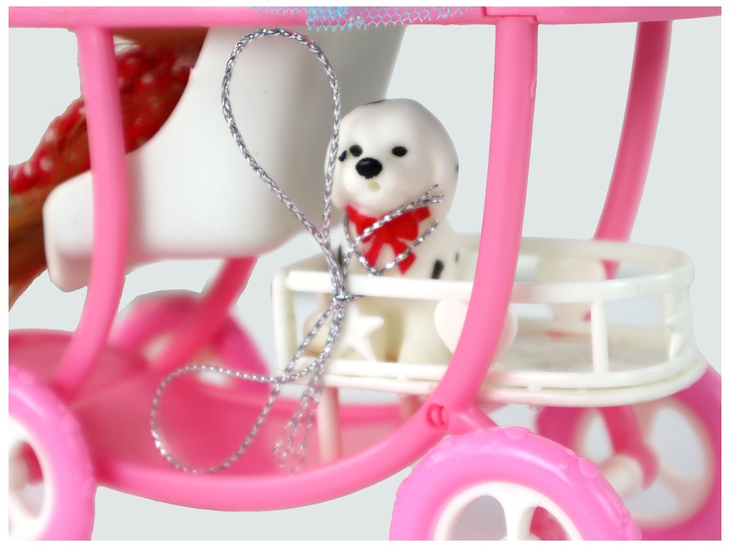 A Lucy babán és a kismamaruháján kívül a készletben van egy második gyermek is, aki idősebb, hosszú barna hajú, és egy imádnivaló piros, fehér pöttyös ruhába van öltözve. A babakocsi alatti speciális kosárban egy fehér kutya fekete foltokkal és piros masnival.