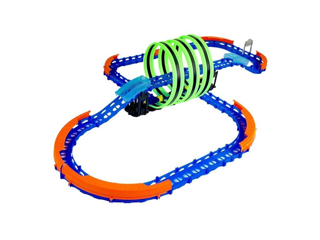 Magic Tracks nagy autópálya 360 fokos fordulatokkal, amelyek világítanak a sötétben. A készlet tartalmaz egy játék távirányítós autót narancssárga színben. Gyors és dinamikus. A teljes készlet 62 részből áll.