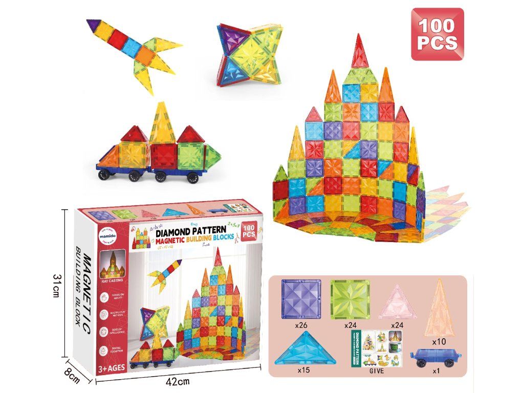 Mágneses építőkocka 100 darab Gyémántminta MT1162