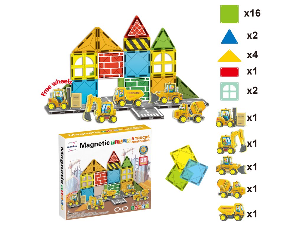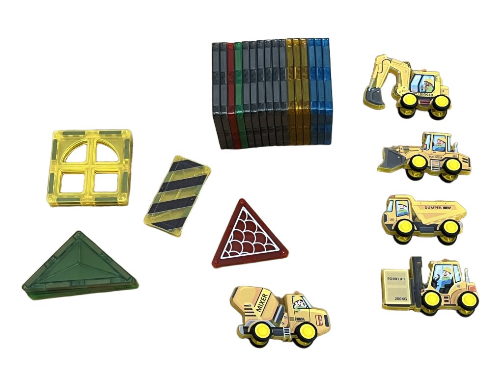 - Tartalma: mágneses kockák, útburkolati elemek, közlekedési táblák, autók és egyéb kiegészítők