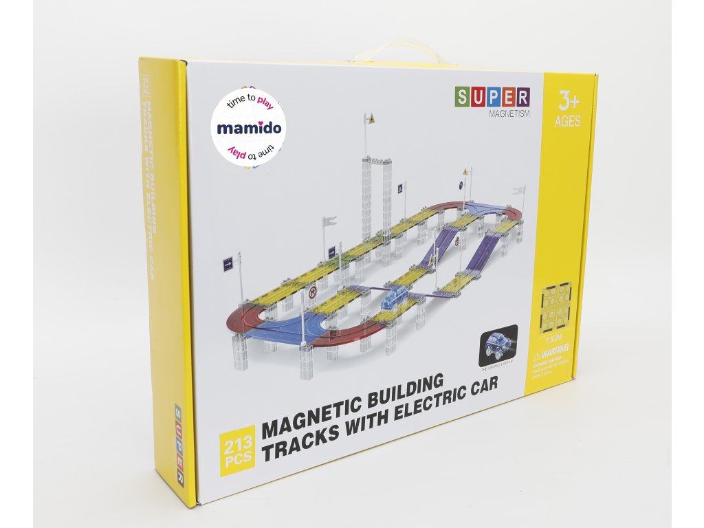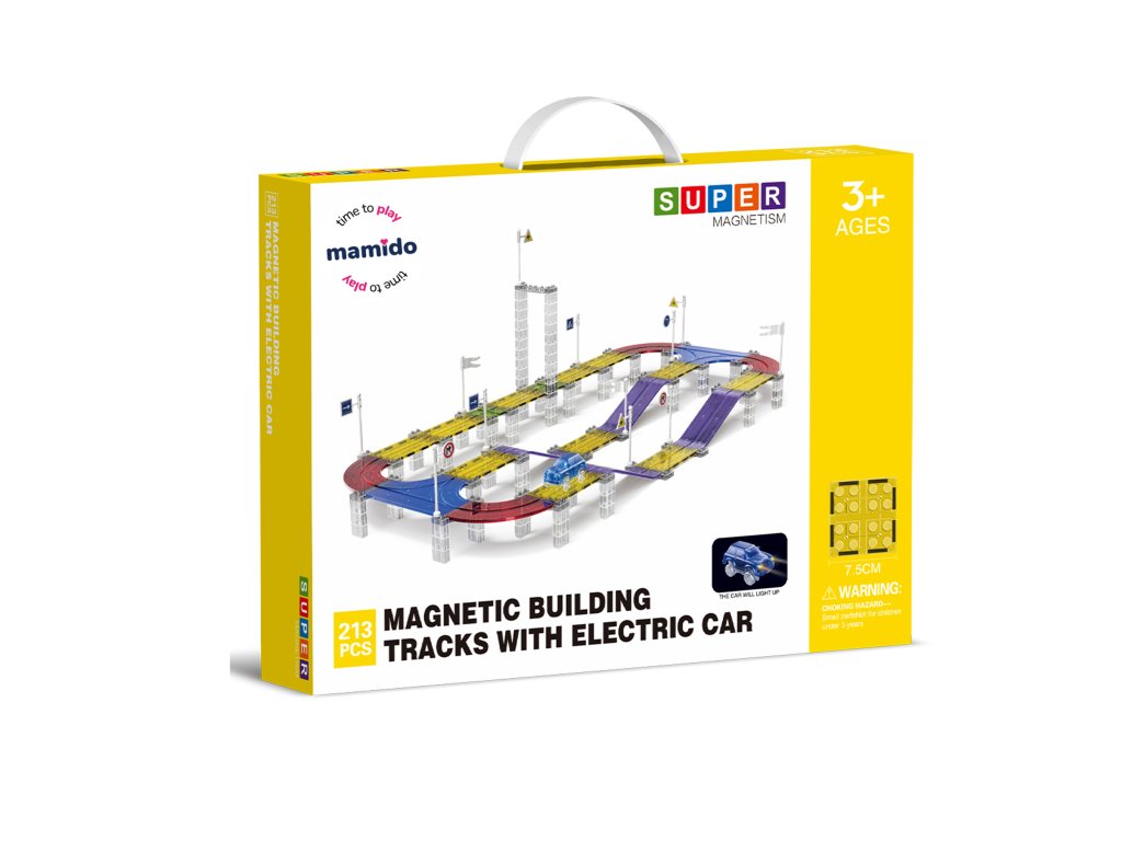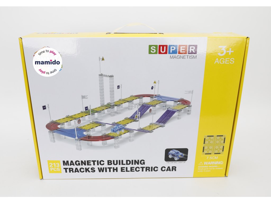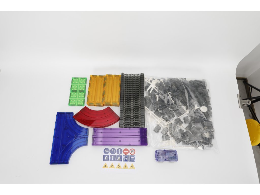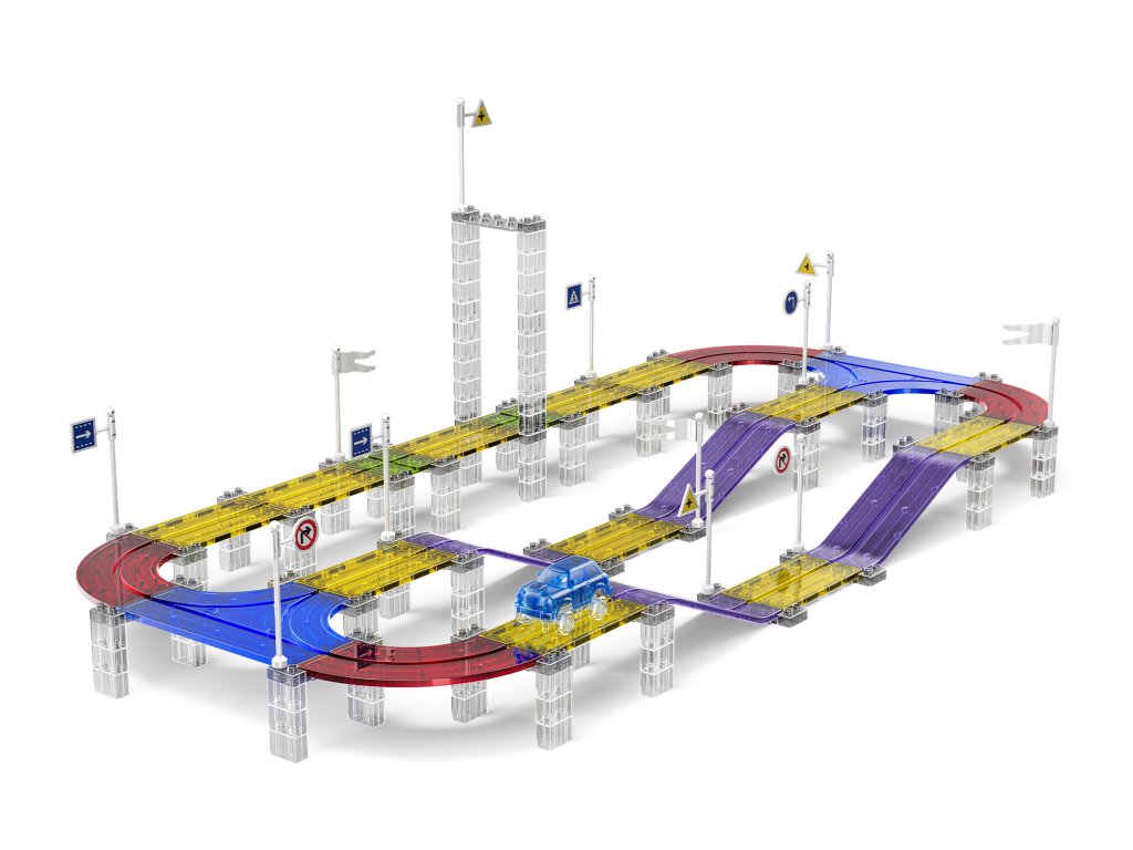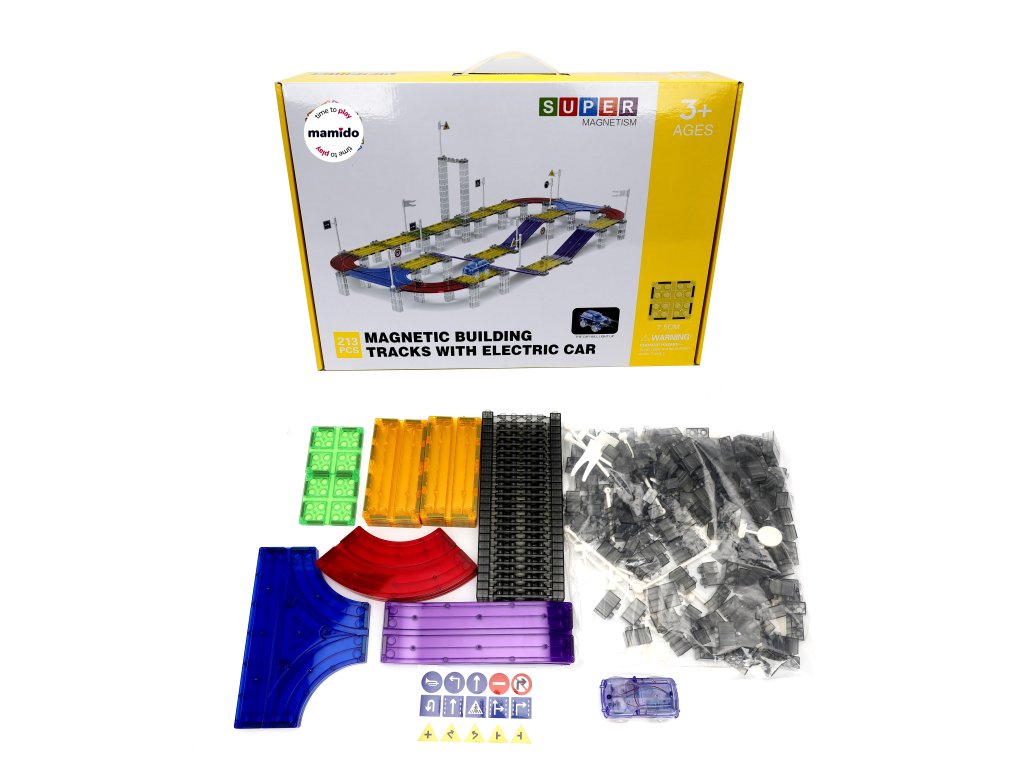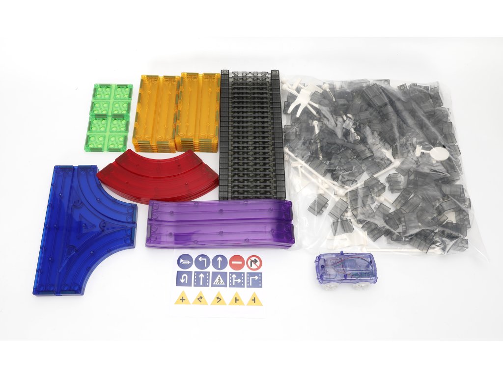 A készlet 213 darab mágneses építőelemet tartalmaz, speciális pályaelemekkel. Az erős mágneseknek köszönhetően a panelek könnyen összeilleszthetők, így a gyerekek kísérletezhetnek a pálya formájával és magasságával. Az elektromos kisautó önállóan végigjárja az egész útvonalat, ami nagyszerű mozgásélményt nyújt és fejleszti a technikai gondolkodást.