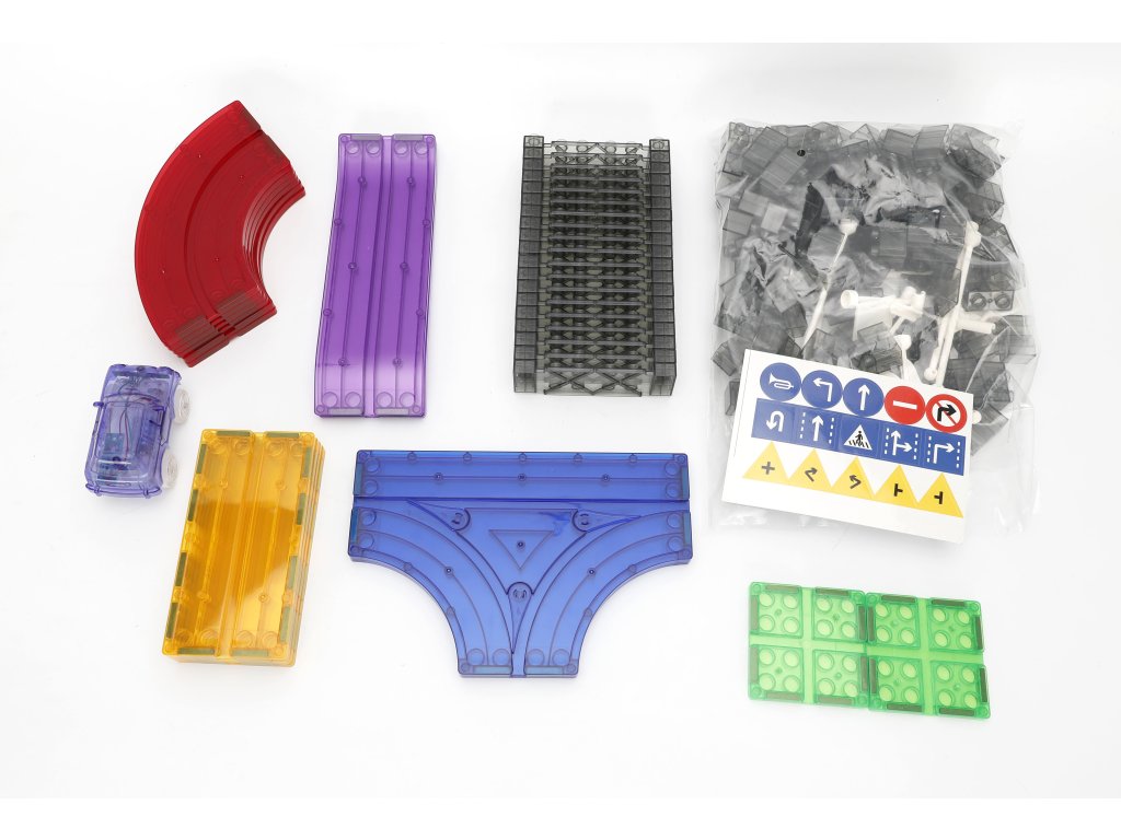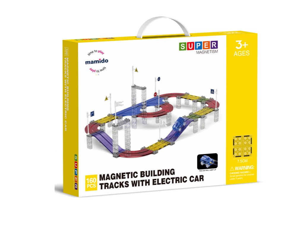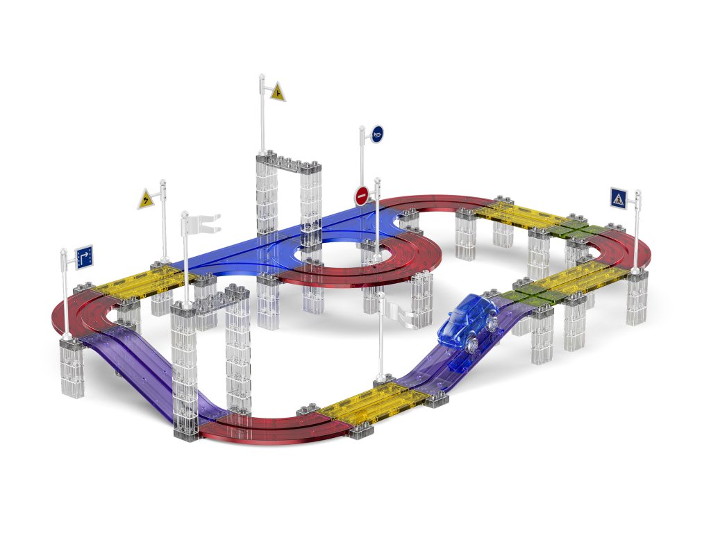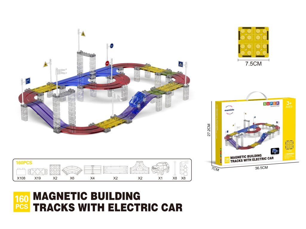 A készlet 160 mágneses elemet tartalmaz, speciális pályaelemekkel. Az erős mágneseknek köszönhetően a panelek könnyen összeilleszthetők, így a gyerekek kísérletezhetnek a pálya formájával és magasságával. Az elektromos kisautó önállóan végigjárja az egész útvonalat, ami nagyszerű mozgásélményt nyújt és fejleszti a technikai gondolkodást.