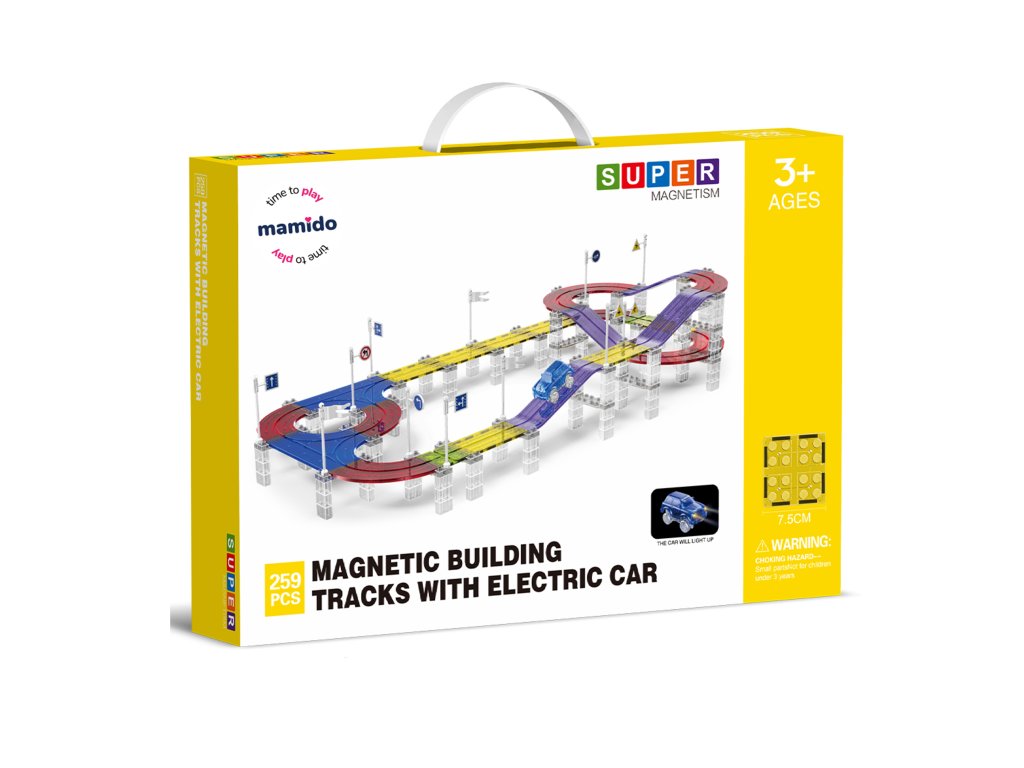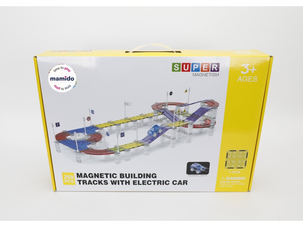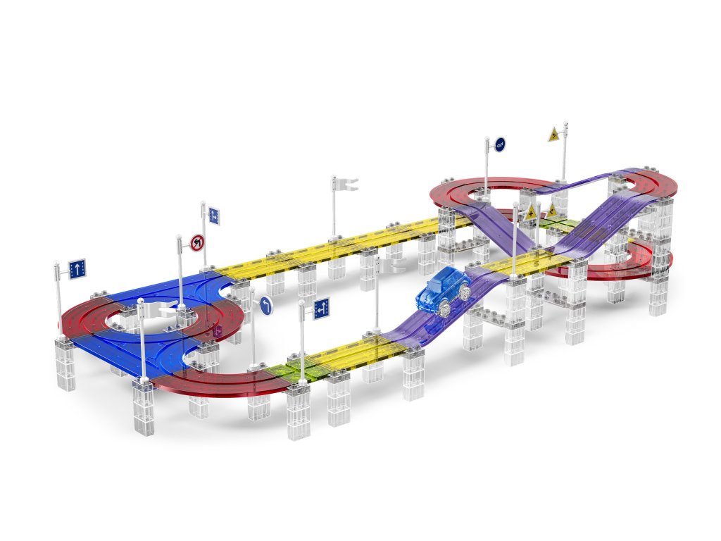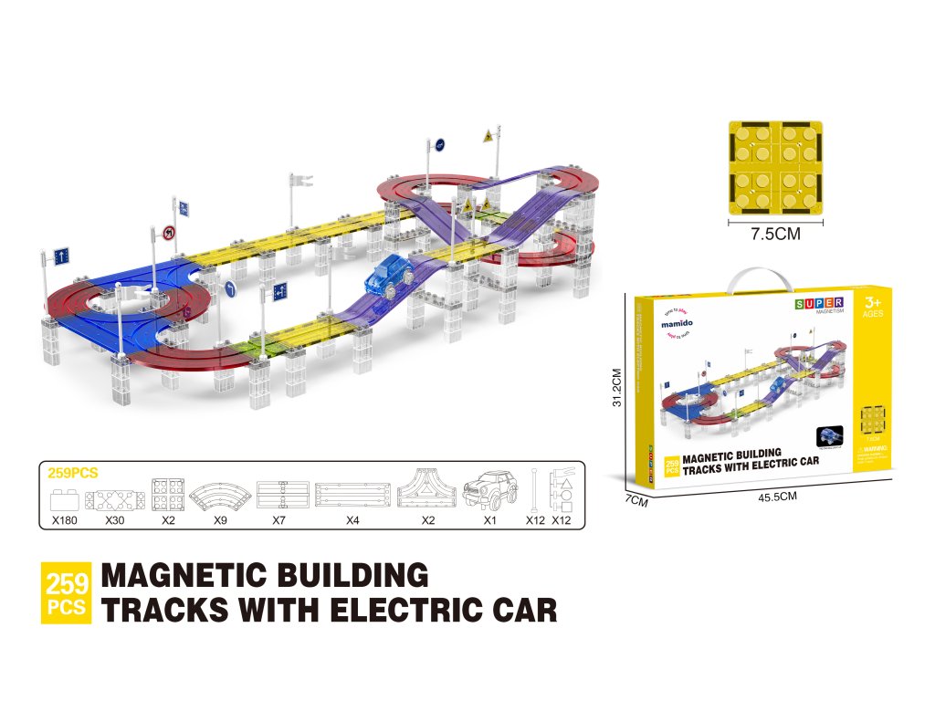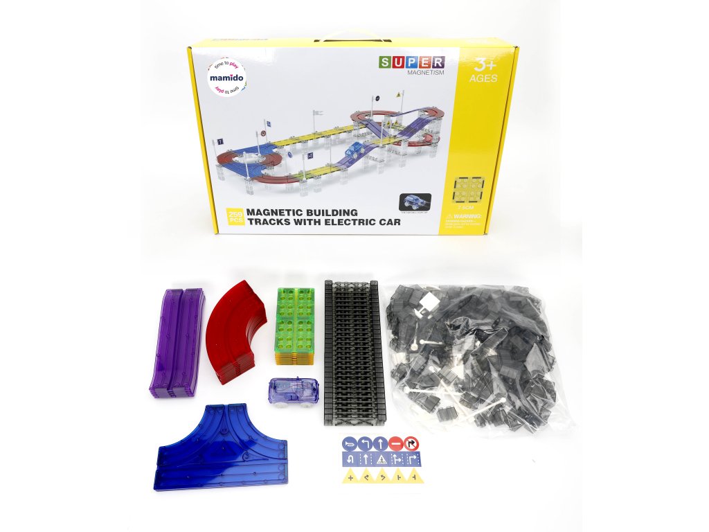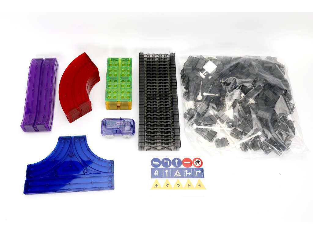A készlet 259 mágneses elemet tartalmaz, beleértve a pályakészítéshez szükséges speciális részeket. Az erős mágneseknek köszönhetően a panelek könnyen összeilleszthetők, így a gyerekek kísérletezhetnek a pálya formájával és magasságával. Az elektromos kisautó önállóan végigjárja az egész útvonalat, ami nagyszerű mozgásélményt nyújt és fejleszti a technikai gondolkodást.