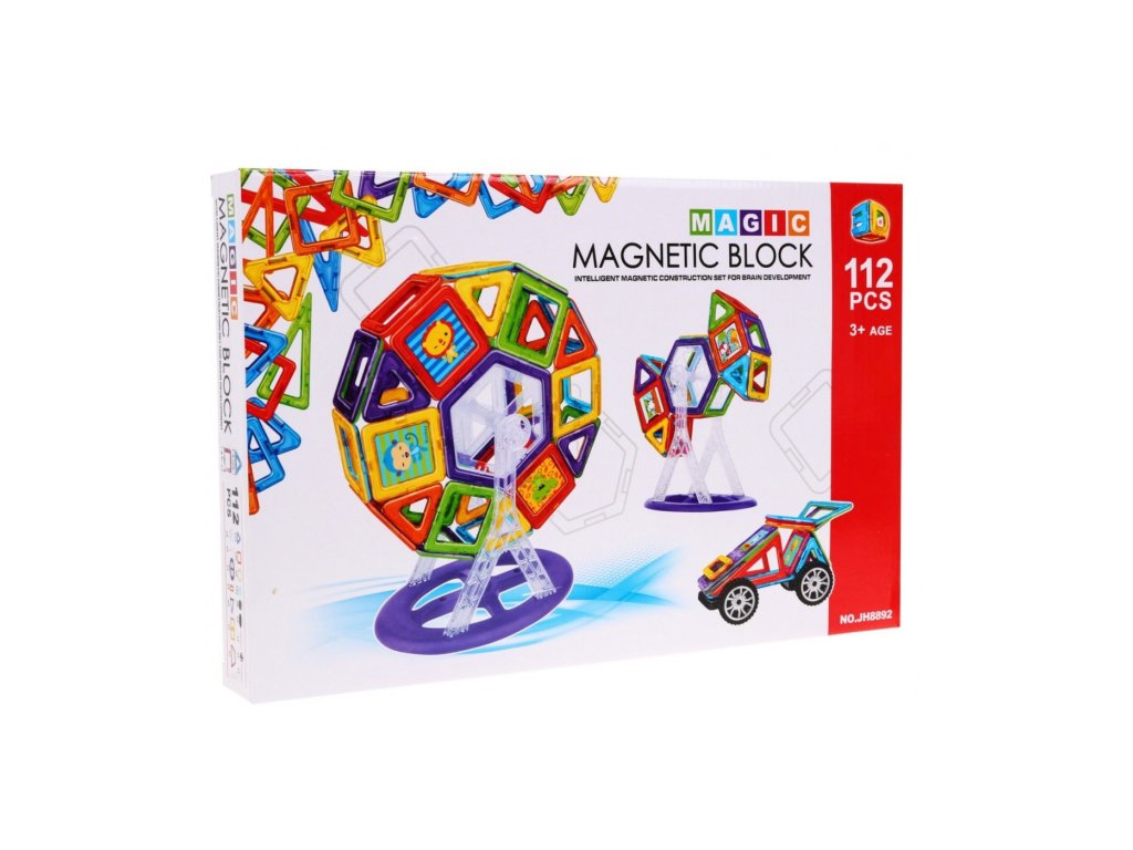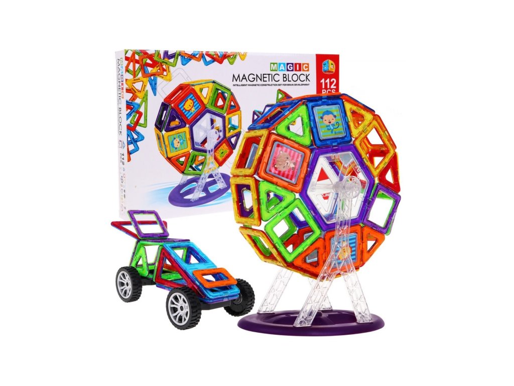 A mágneskészlet 112 részből áll. A kockákkal való játék serkenti a gyermek fantáziáját és kreativitását, gyakorolja a kézügyességet és a koncentrációt.