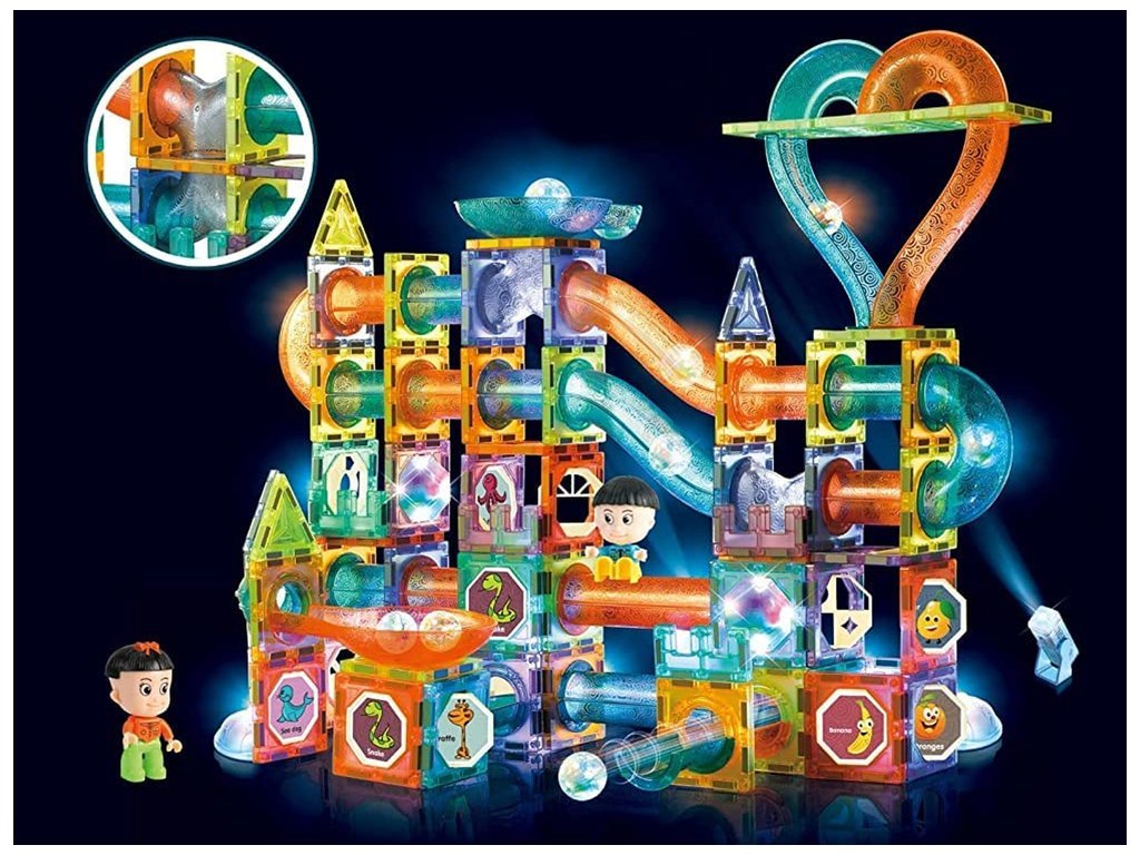 A mágneskockák kiváló oktatójáték, fejlesztik a gyerekek kreativitását, türelemre és koncentrációra tanítanak. A készlethez mellékelt füzet példákat mutat be a pályára. Egyes alkatrészek beépített világítással rendelkeznek, hogy a játék ötletes megjelenést biztosítson.