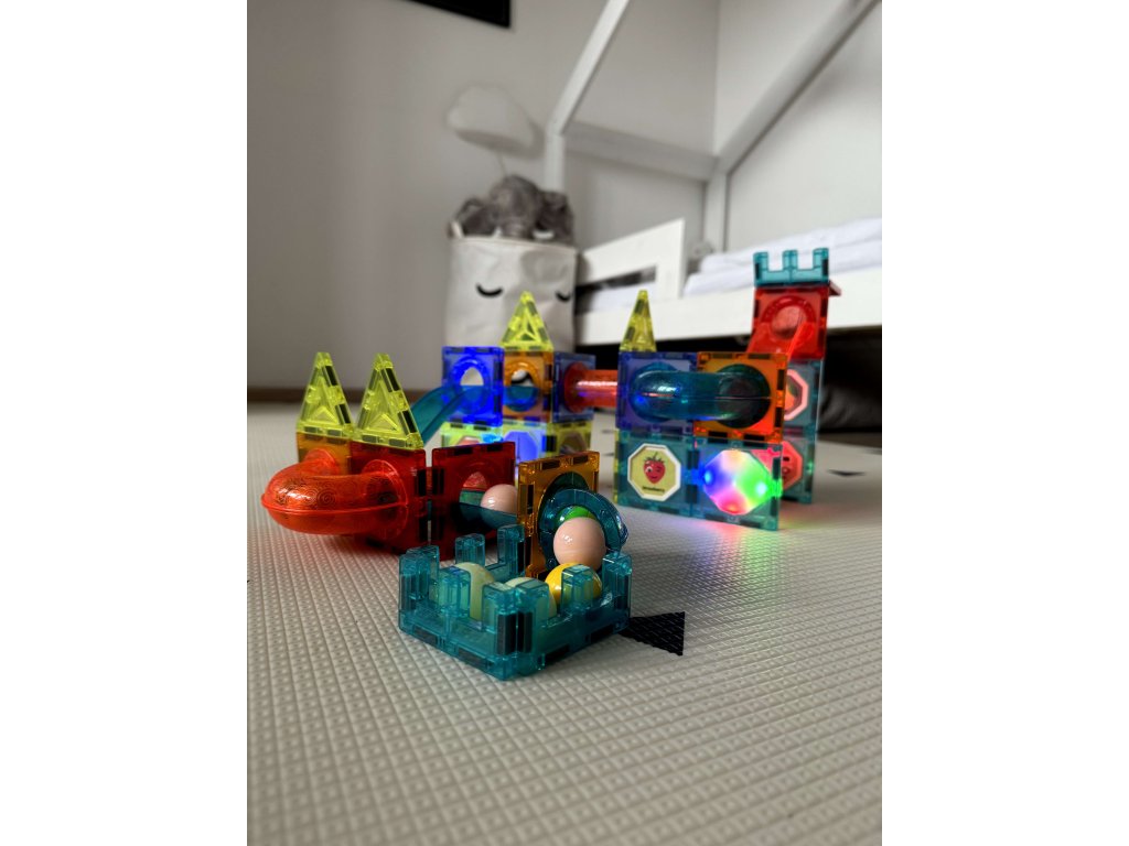 A mágneskockák kiváló oktatójáték, fejlesztik a gyerekek kreativitását, türelemre és koncentrációra tanítanak. A készlethez mellékelt füzet példákat mutat be a pályára. Egyes alkatrészek beépített világítással rendelkeznek, hogy a játék ötletes megjelenést biztosítson.