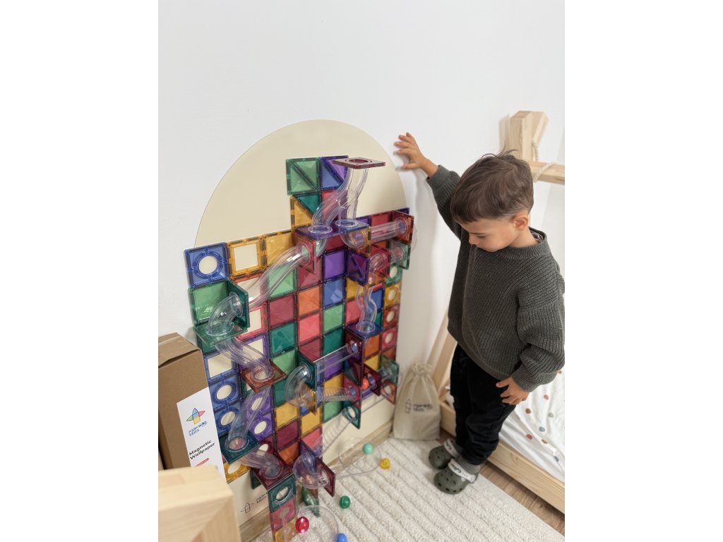 A Mamido Tiles mágneses tapéta a mágneses erőnek és az egyszerű telepítésnek köszönhetően még több szórakozást, alkotást és tanulást hoz a gyerekeknek. Egyszerűen csak ragaszd fel egy sima falra, és azonnal interaktív teret hozhatsz létre mágneseknek, krétával való rajzoláshoz, mosható színekkel való festéshez és táblafilccel való íráshoz.