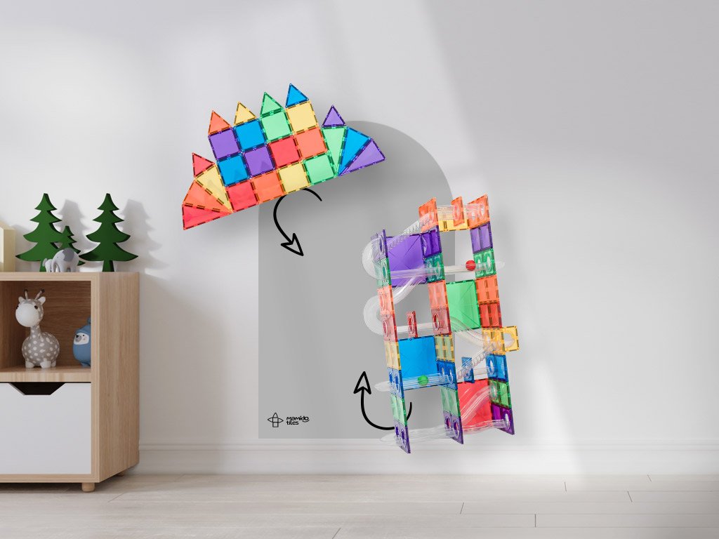 A Mamido Tiles mágneses tapéta a mágneses erőnek és az egyszerű telepítésnek köszönhetően még több szórakozást, alkotást és tanulást hoz a gyerekeknek. Egyszerűen csak ragaszd fel egy sima falra, és azonnal interaktív teret hozhatsz létre mágneseknek, krétával való rajzoláshoz, mosható színekkel való festéshez és táblafilccel való íráshoz.