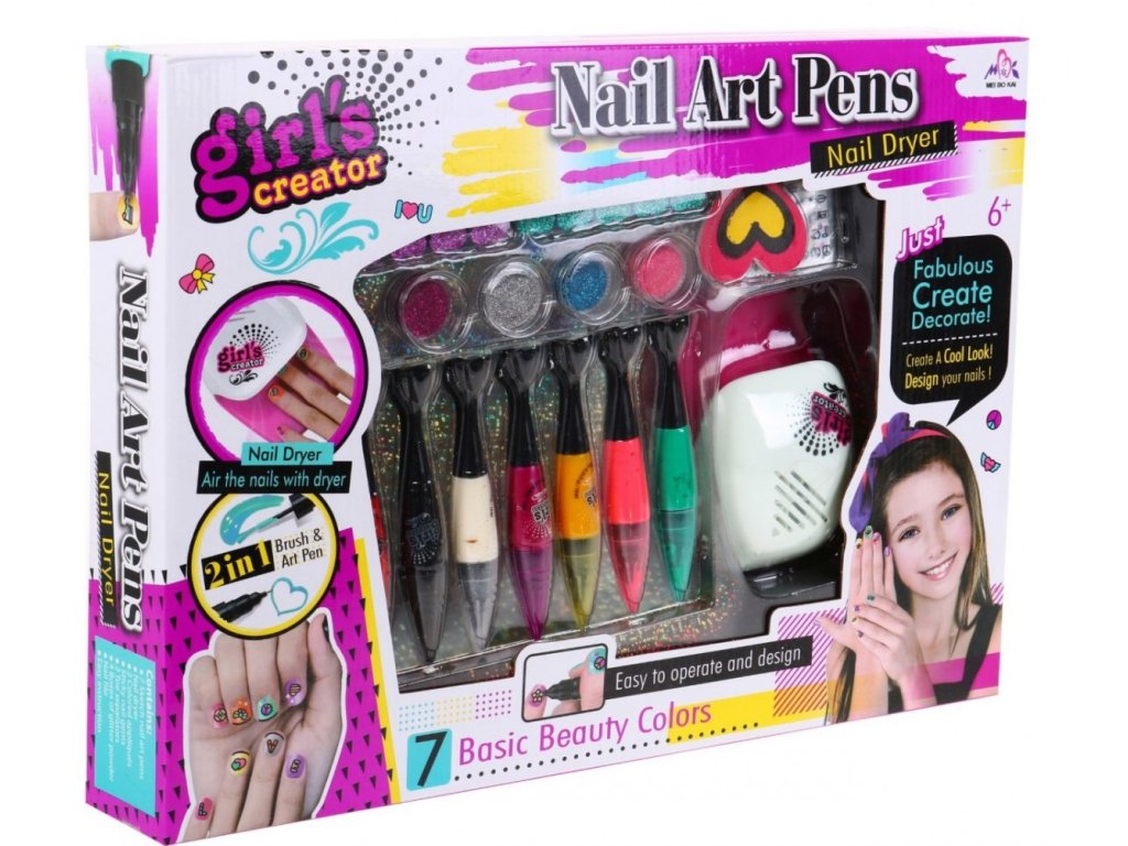 Lányoknak készült körömkészlet fejleszti a kreativitást és a képzelőerőt. Amikor a fogantyút behelyezzük a szárítóba, a ventilátor bekapcsol, és a levegő enyhén áramlani kezd benne, ami megkönnyíti a festék száradását.