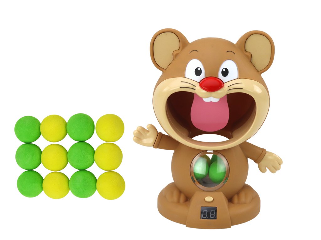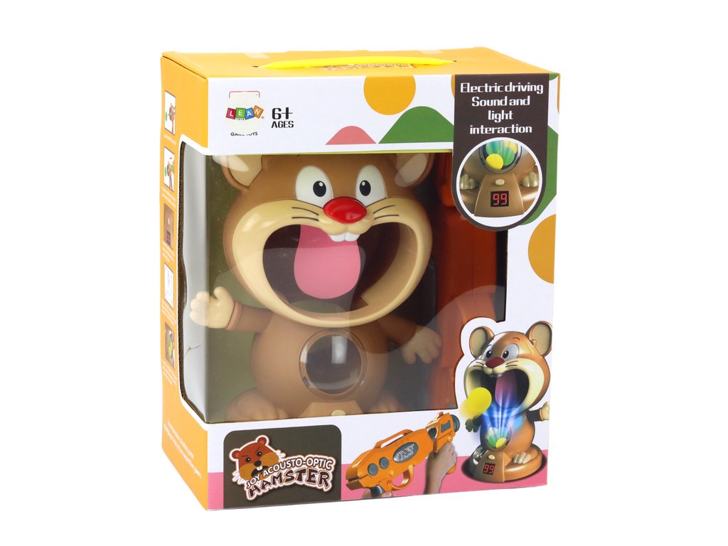 Hrací set je velmi jednoduchý na použití. Stačí nabít pistoli měkkými kuličkami a poté zamířit na hlavu křečka. Když trefíte jazyk křečka, hra vydá zvuk potvrzující zásah a na malém LCD displeji uvidíte své skóre zobrazené ve formě bodů. V setu také naleznete pistoli a speciální měkké kuličky, které Vám umožní dlouhé hodiny zábavy.
