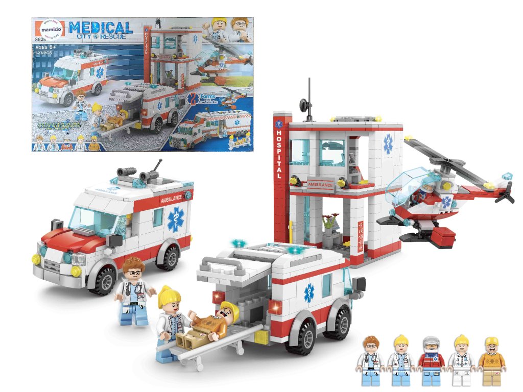 Mentőállomás építőkocka figurákkal és helikopterrel 823 darab MT1128