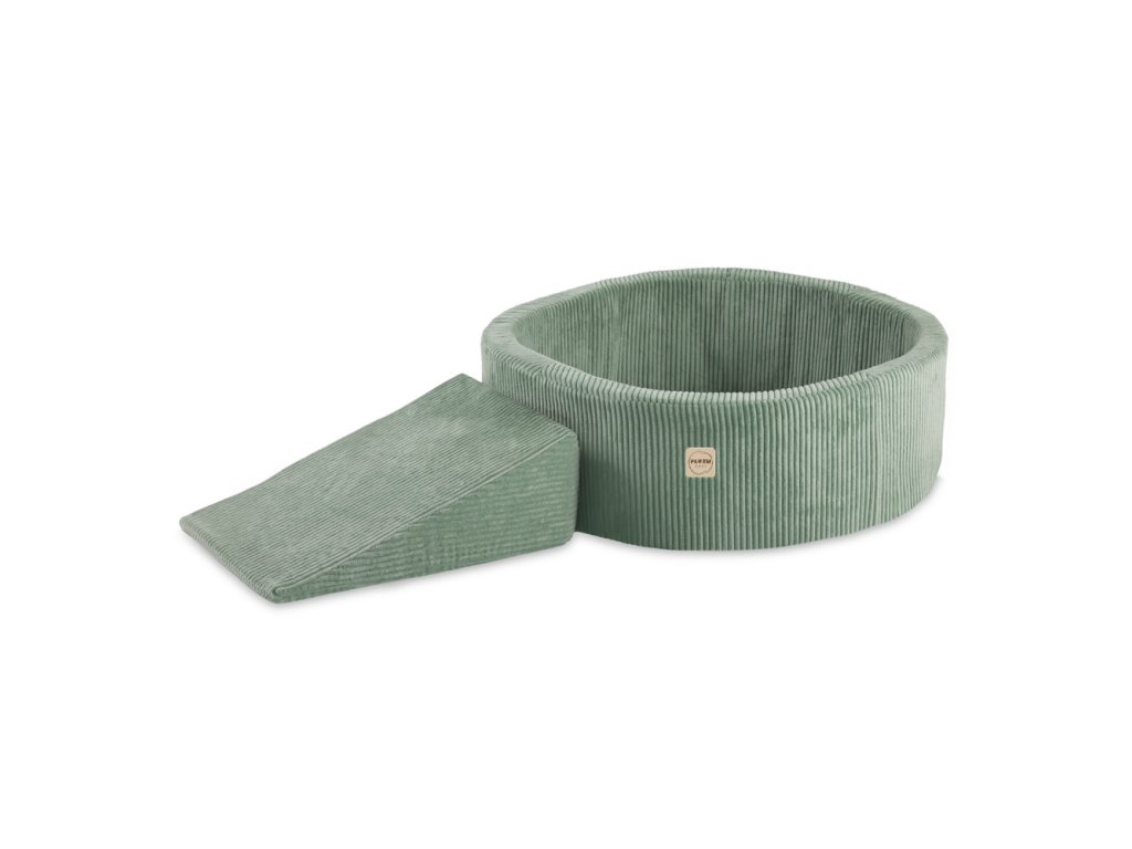 Mini játszótér medencével Ø 90 × 30 cm játékelemmel (háromszög) és 200 zöld labdával