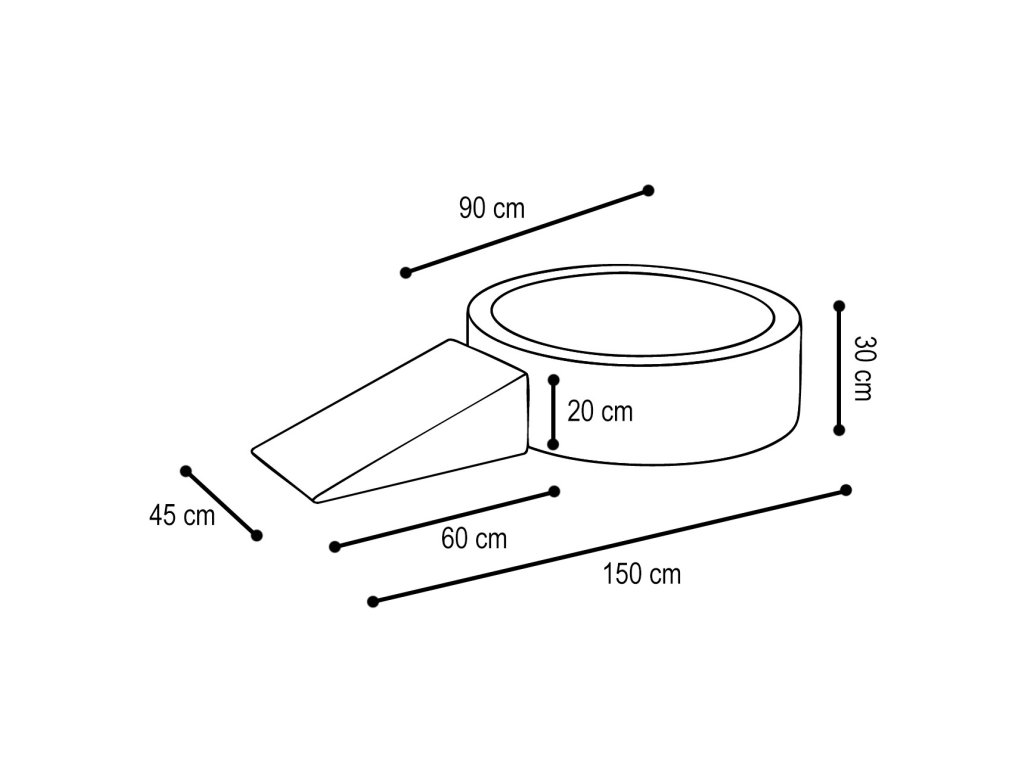Játszóterünk egy száraz labdamedencét és egy háromszöget tartalmaz, amelyek végtelen lehetőségeket garantálnak a játékra és a világ felfedezésére gyermeke számára.
