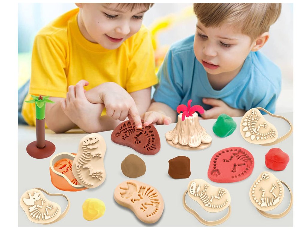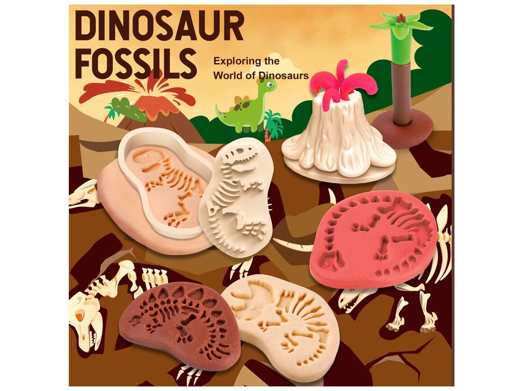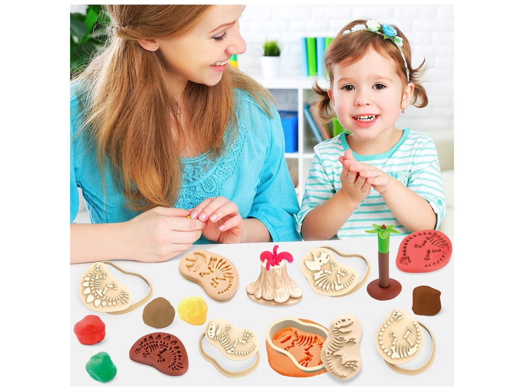Sada plastelíny je skvělá zábava pro každé dítě, které miluje hnětení. Hraní s plastelínou probouzí dětskou fantazii a podporuje kreativitu, což přináší neomezené možnosti tvoření. To vše díky jednoduchým a bezpečným doplňkům a nástrojům. Sada umožní vstoupit do světa archeologů zkoumá rafinovaný svět dinosaurů. Stačí rozválet plastelínu na tenčí plát a přiložit formu s vybraným vzorem zkamenělin dinosaurů.