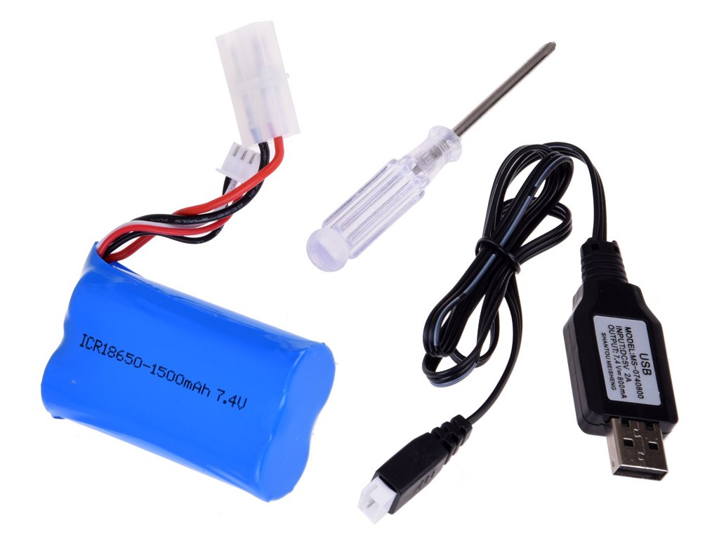 - Lithiová baterie s kapacitou 1500 mAh a napětím 7,4 V