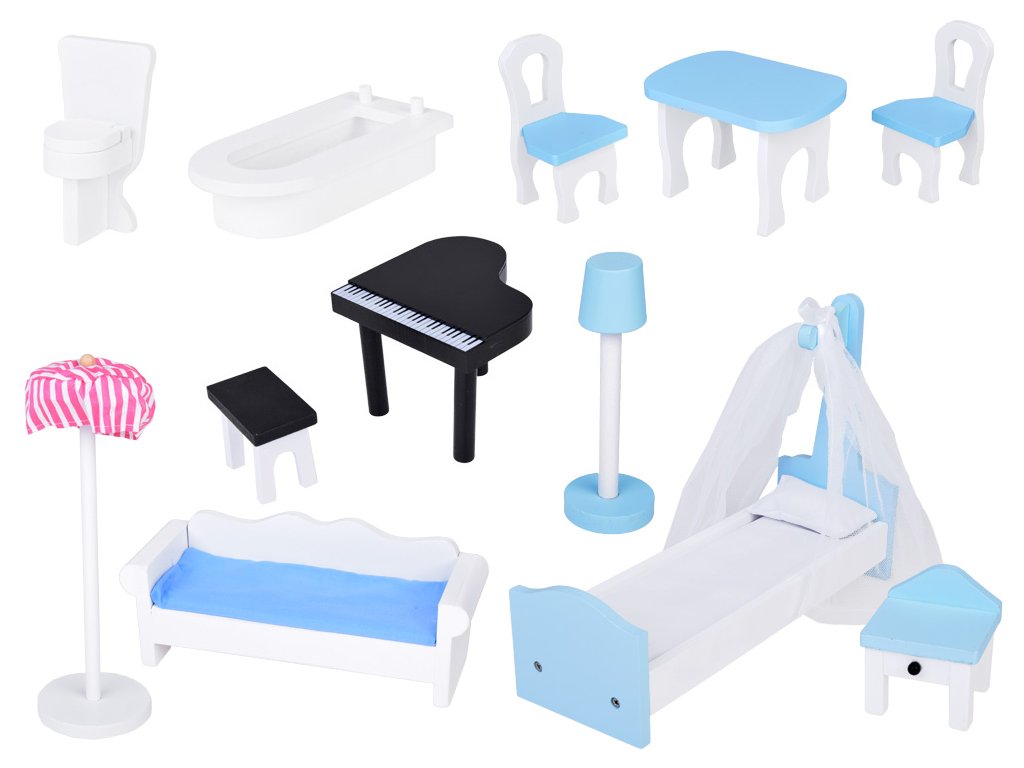 - Součástí sady je precizně zpracovaný dřevěný nábytek, který dokonale ladí s interiérem domku. Nábytek lze libovolně uspořádat, což dává dítěti volnost při zařizování prostoru.