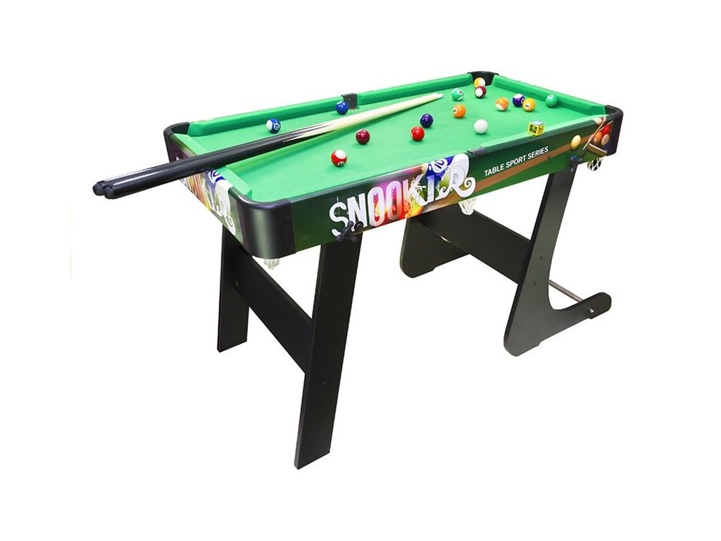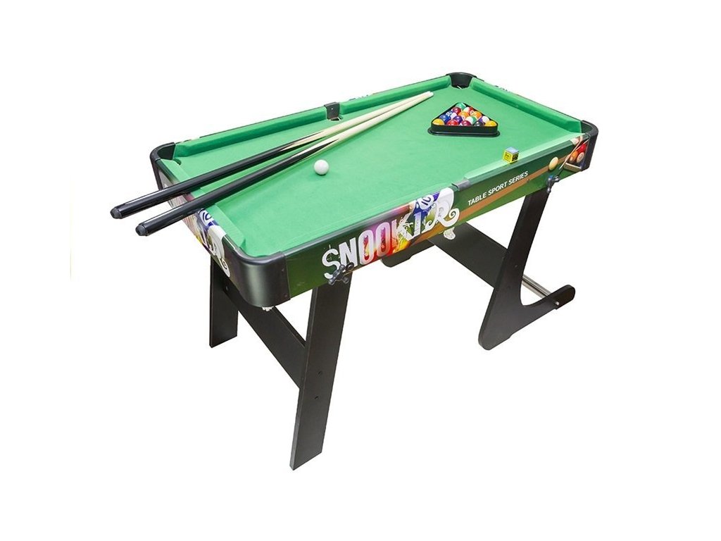 Nagy, összecsukható fa biliárdasztal labdákkal