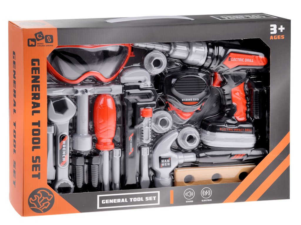 Velký set nářadí je skvělým tipem pro každého kutila. Tento set je celý vyroben z plastu v atraktivních barvách a realistických tvarech. Hračkový set obsahuje veškeré potřebné příslušenství pro domácí opravy. V domácnosti vždy něco potřebuje opravit, ať už je to kolo od autíčka, odšroubovaná šroubka od domečku pro panenky nebo vystupující lišta a podobně. Tento set je skvěle vybaven a zvládne každou opravu. Pohyblivá šroubovák se otáčí oběma směry, takže dokáže zašroubovat i vyšroubovat šrouby. Klíčový set se hodí k odšroubování i přišroubování. S kladívkem přibijete hřebíky a ochranné brýle ochrání oči malého kutila.