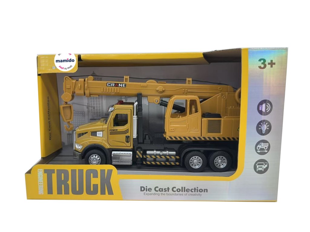 Fém játékautó útépítő daru fény- és hangeffektekkel MT1558