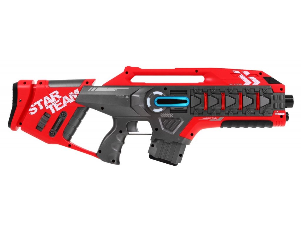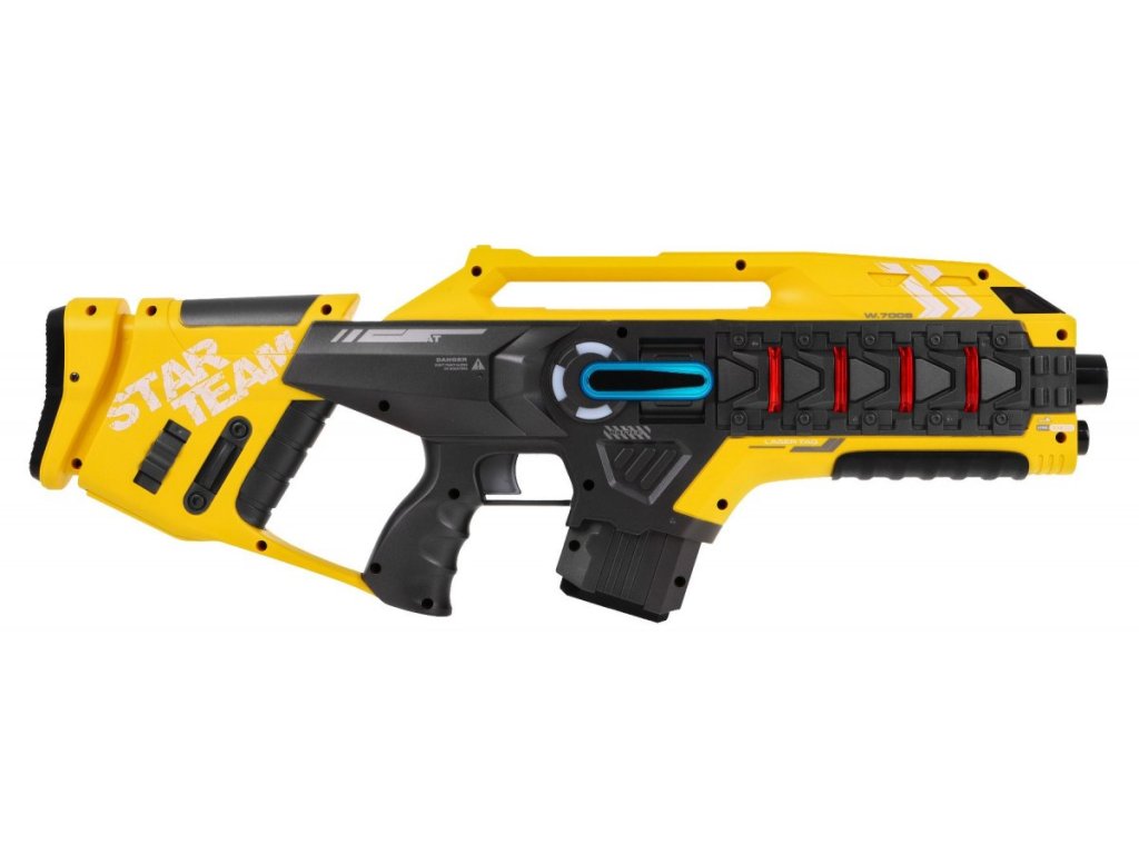 Exkluzív készlet két szuper lézerfegyvert tartalmaz. Kiváló kidolgozás, élénk színek és figyelem a részletekre. A fegyverek nagyon élvezetes használatot biztosítanak. A fegyver infravörös sugarakat bocsát ki, amelyeket más eszközök vevőjére továbbítanak. A játék 8 év feletti gyermekek számára készült, és CE tanúsítvánnyal rendelkezik. Az egész csomag színes csomagolásban van, mely ajándéknak is ideális