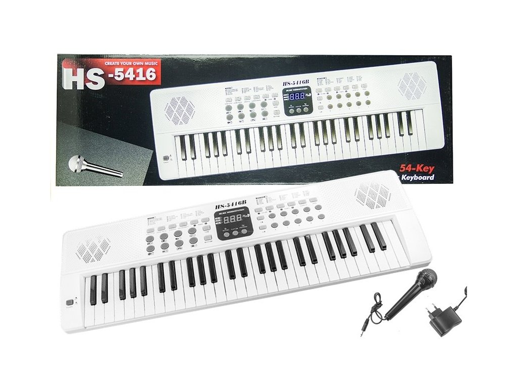 Nagyméretű gyerekbillentyűzet mikrofonnal, fehér