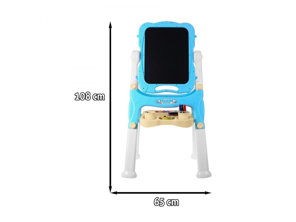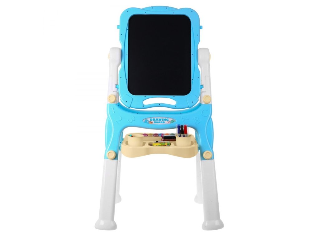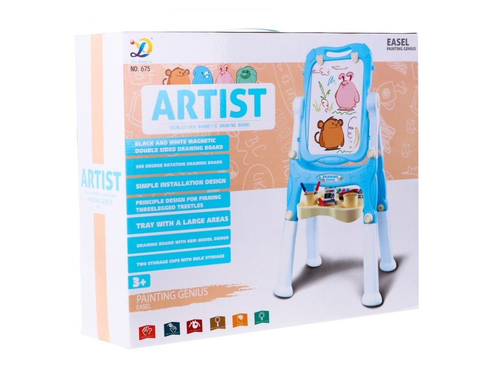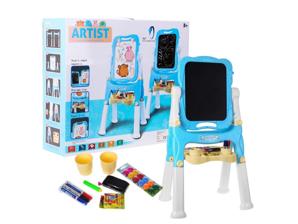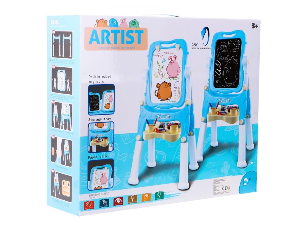A fekete, krétás oldalra krétával festhetsz. A készlet tartalmaz egy speciális tartót a kréta tartására, megakadályozza a kréta eltörését és tisztán tartja a kisgyermekek kezét. A fekete oldalra mágnesek is rögzíthetők. A tábla 360 fokban forgatható, gondosan készült.