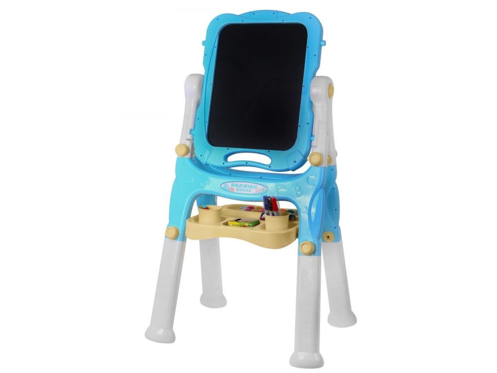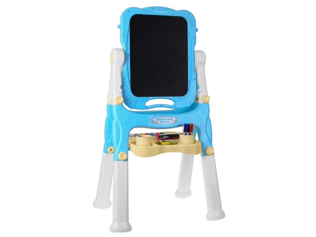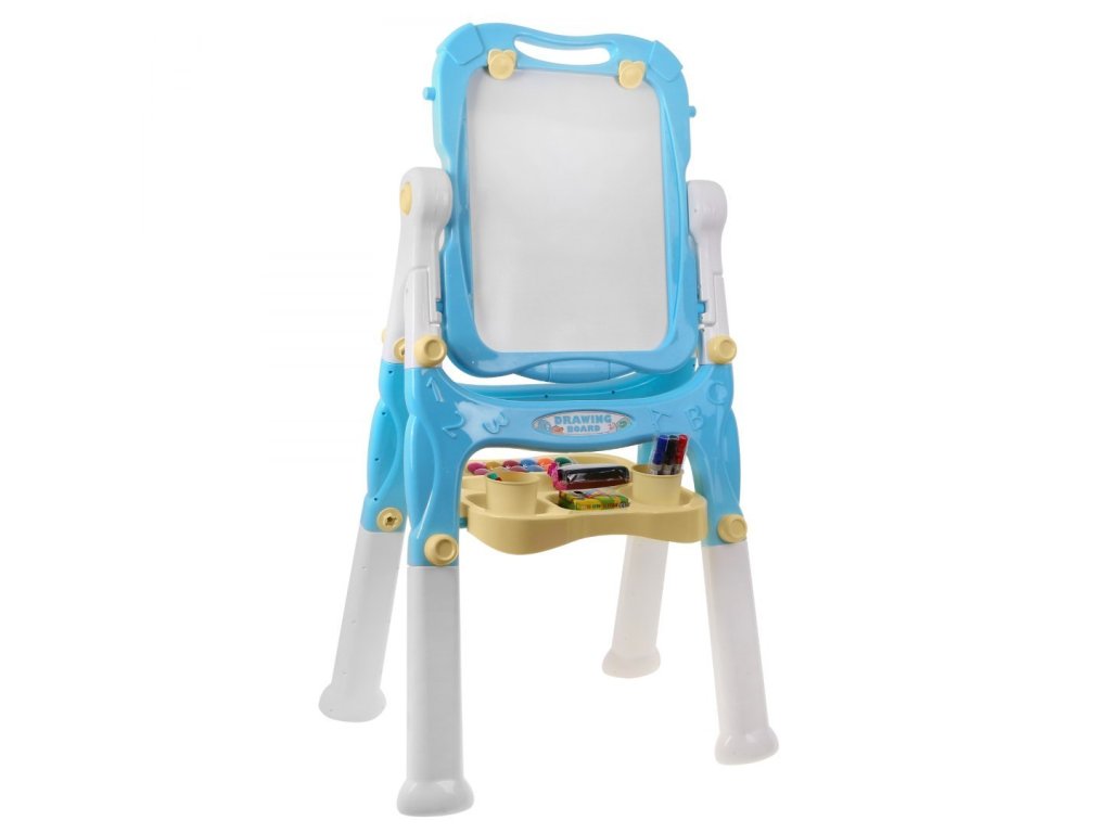 A tábla egyik oldalán mágneses, a másikon krétával írható. A fehér oldalra írhat a készlethez csatolt tollakkal, majd szivaccsal törölje le a képeket. A fehér oldal a szerelvényhez rögzített színes mágnesek rögzítésére is szolgál.
