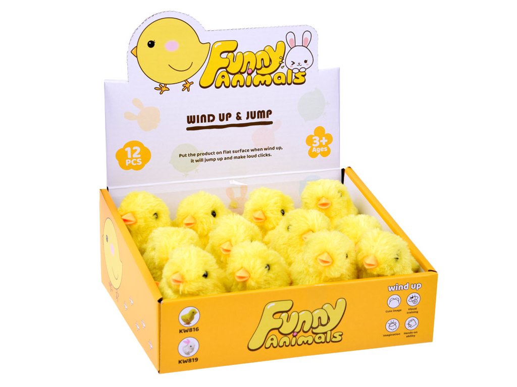 Žluté, natahovací kuřátko je roztomilá, nenápadná hračka, která přináší spoustu radosti. Kuřátko po natažení veselou chůzí kráčí dopředu a houpá se vpřed a vzad.