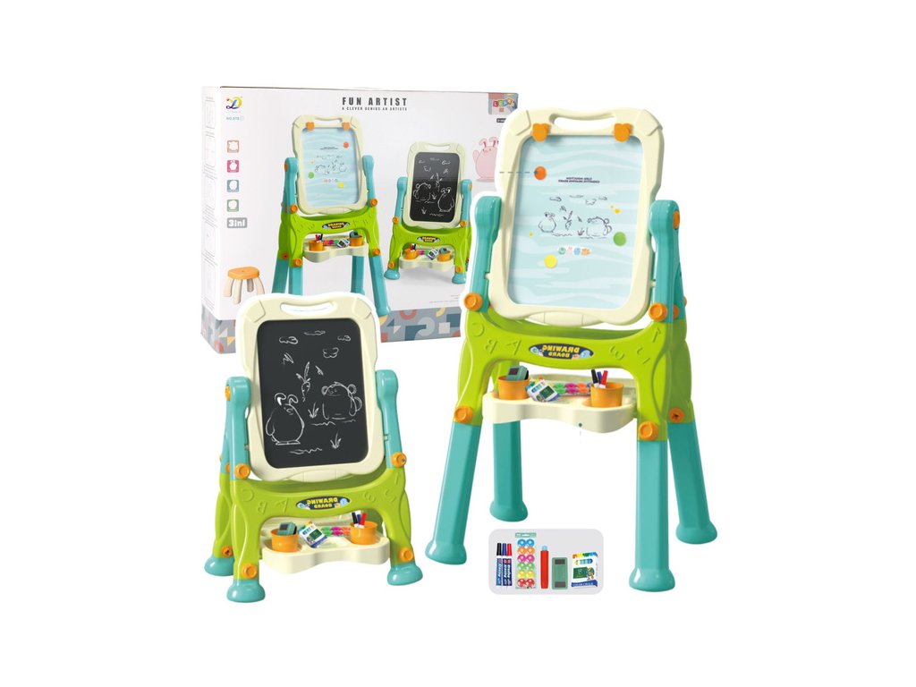 Oktató kétoldalas 3 az 1-ben tábla gyerekeknek kiegészítőkkel, zöld