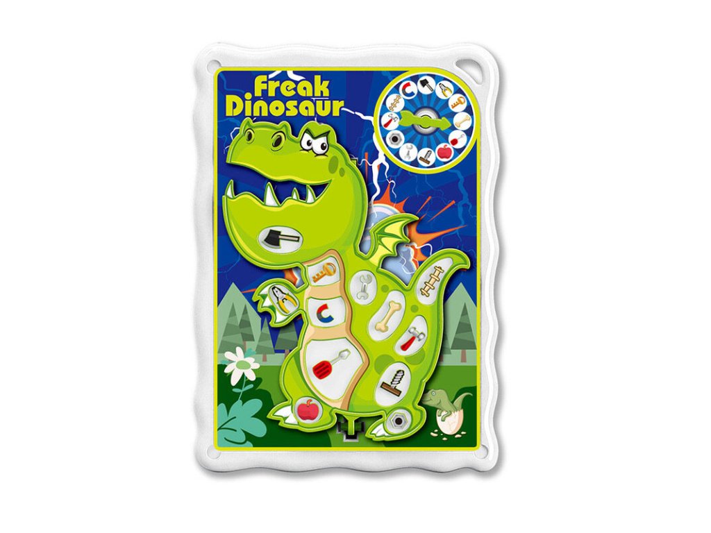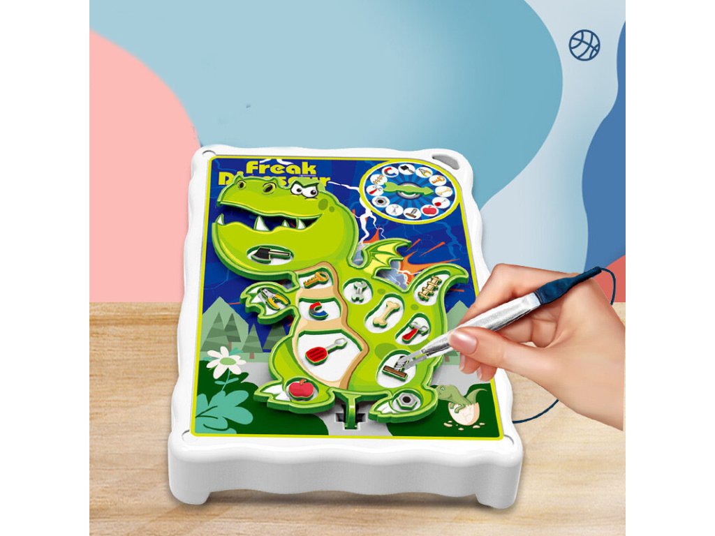 A táblán 12 különböző hely található a dinoszaurusz testén, ahol apró elemeket/eszközöket kell elhelyezni. Forduljon meg, és nézze meg, mit mutat a nyíl. Próbálja meg óvatosan kihúzni a tárgyat a megfelelő részből. De vigyázz! Csak finoman érintse meg a dinoszaurusz felületét, vibrálni kezd, hangokat ad ki, és veszít. Próbáld meg nem felébreszteni.