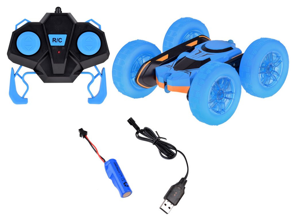 Őrült kétoldalas STUNT távirányítós autó világító kerekekkel, kék