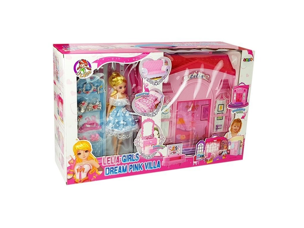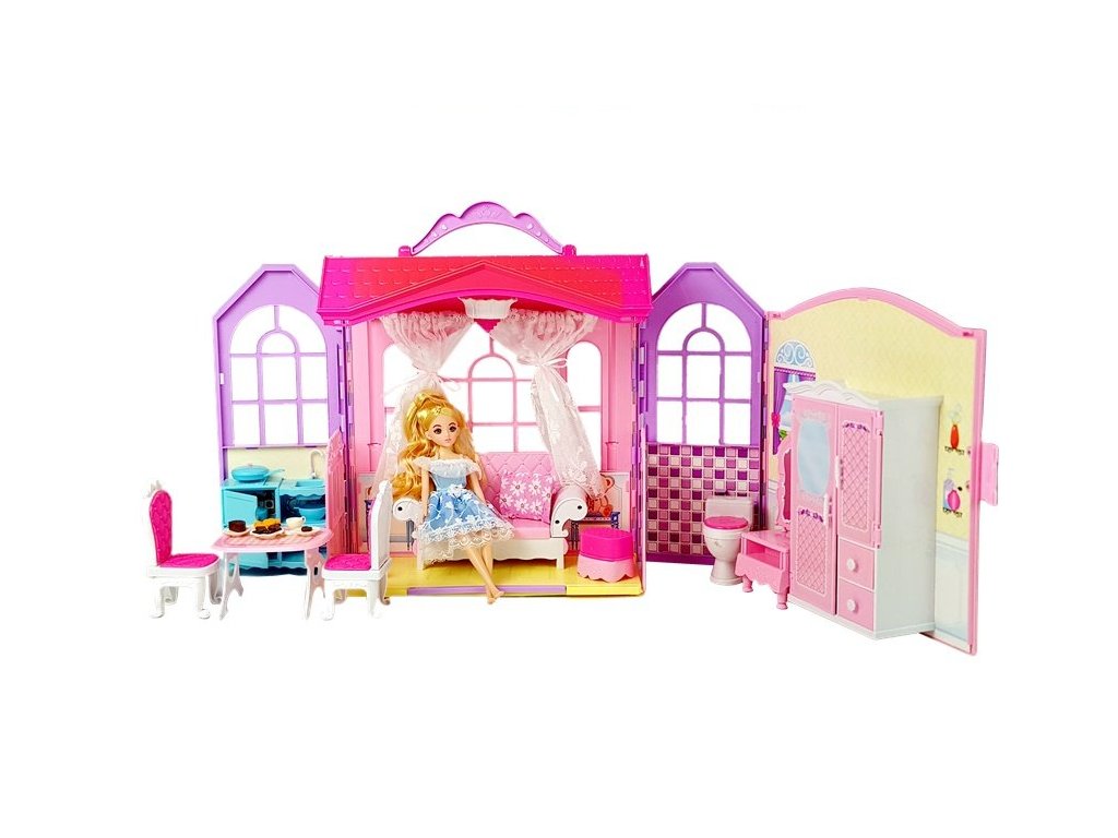 Minden lány arról álmodik, hogy saját babaháza legyen, és bárhová magával viheti, hiszen a fogantyúnak köszönhetően könnyen összecsukható és hordozható. Egy gyönyörű, színes ház gardróbbal minden gyermeknek tetszeni fog. A készlet egy elegáns babát tartalmaz ruhákkal.