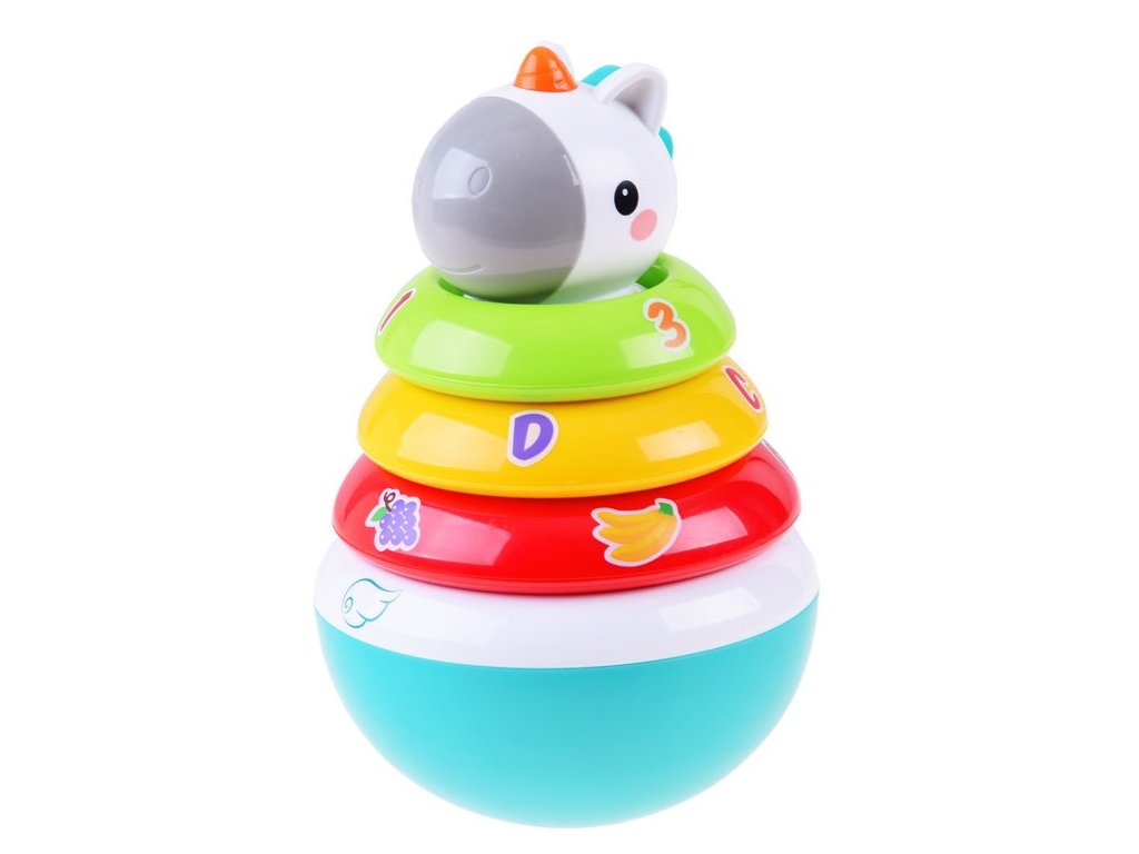 A piramis három különböző átmérőjű karikával rendelkezik, amelyek tökéletesek csörgőként. Kis méretüknek köszönhetően a gyerekek könnyedén megfoghatják az ujjai között.
