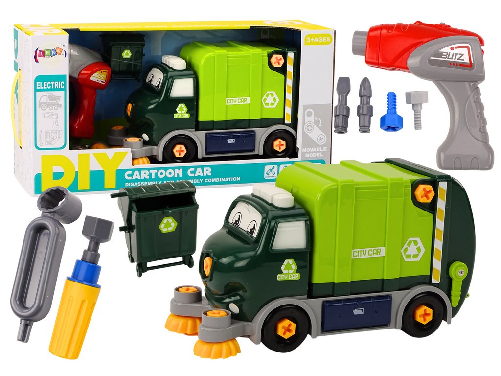 Minden fiú, akit érdekelnek a nagy gépek, most kis szerelővé válhat ezzel a zöld rajzfilmes szemeteskocsival, amelyet szétszerelhet. Ez egy lenyűgöző játék, amely lehetővé teszi a gyerekek számára, hogy felfedezzék, miből készülnek ezek a lenyűgöző járművek.